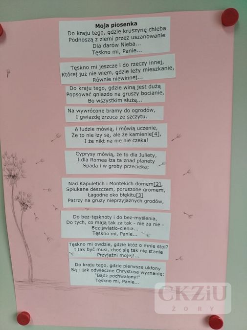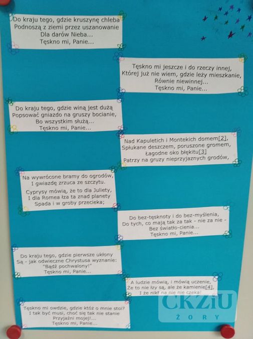 W dniu 25.11.2021 r. klasa 2c na godzinie z wychowawcą świętowała Rok Cypriana Kamila Norwida. Uczniowie przygotowali własne interpretacje wierszy poety – „Nad grobem Julii Capuletti w Weronie” oraz „Moja piosenka”. Przedstawili je w formie plakatów. Efekty ich pracy są do obejrzenia w galerii prac uczniowskich.
