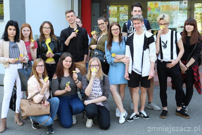 Nasza szkoła jak co roku dołączyła do tej akcji. Tym razem równolegle przeprowadziliśmy akcję w bibliotece, gdzie uczennice z 1bT pod opieką pani Anny Staroń wręczali żonkile czytelnikom odwiedzającym bibliotekę. Natomiast pani Katarzyna Wronka zmotywowała klasy: 2aT i 2bT, które pod opieką pani Ewy Druch rozdawały żonkile na żorskim rynku mieszkańcom miasta. Odzew całej akcji był bardzo pozytywny.