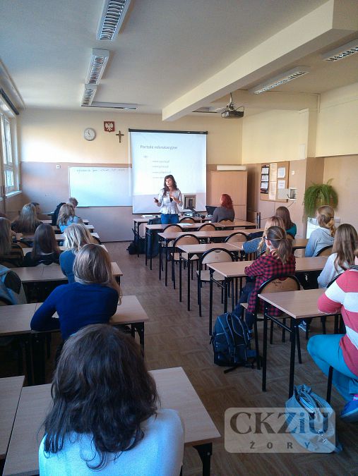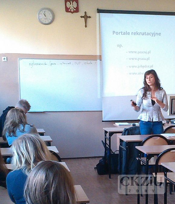 W ramach Ogólnopolskiego Tygodnia Kariery, uczniowie klasy 4aT i 4bT uczestniczyli w ciekawych lekcjach prowadzonych przez panią Ewę Walewską - doktorantkę w Instytucie Nauk o Kulturze Uniwersytetu Śląskiego w Katowicach. Pani Walewska prowadzi ćwiczenia i konwersatoria m.in. ze strategii, perswazji, argumentacji, edukacji medialnej, komunikacji wizerunkowej. Współpracowała z wieloma czasopismami społeczno-kulturalnymi w regionie; od niedawna jest redaktor naczelną Magazynu Studentów Uniwersytetu Śląskiego. Wykład, w który wprowadził uczniów doradca zawodowy pan Damian Lejta, wskazał w jaki sposób należy przygotować poprawne pod względem formalnym oraz odpowiednie do danej oferty pracy, dokumenty aplikacyjne (CV i list motywacyjny), które pozwolą na prezentację pełnego doświadczenia oraz potencjału kandydata. Prowadząca szczegółowo omawiała również najczęściej popełniane błędy. Ponadto uczniowie zostali zapoznani z niedostępnymi zazwyczaj dla kandydata informacjami, mechanizmami oceny aplikacji przez rekruterów oraz sposobami weryfikacji informacji zawartych w dokumentach. Druga część zajęć dotyczyła rozmowy kwalifikacyjnej. Wykład prezentował schemat pełnych, wieloetapowych przygotowań do rozmowy kwalifikacyjnej, które mają zapewnić kandydatowi spokój oraz jak najlepszą autoprezentację.