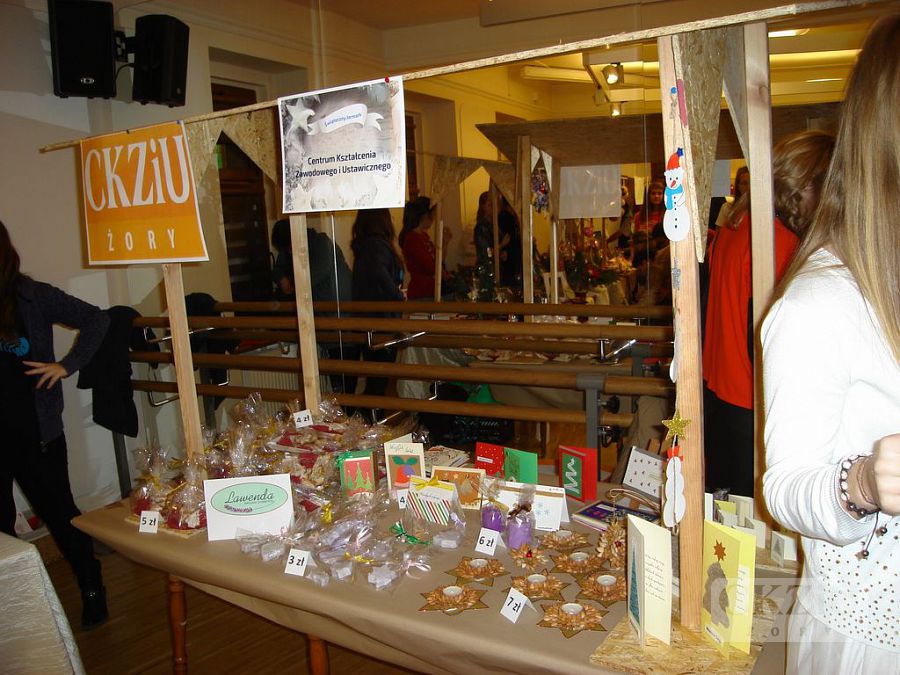 Święta Bożego Narodzenia kochają niemal wszyscy, choć każdy za coś innego. Jest jednak coś, co lubi każdy - tradycję obdarowywania się prezentami. Upominki świąteczne kojarzą się natomiast większości osób z gorączkowymi poszukiwaniami czegoś naprawdę wyjątkowego. Poszukiwanie upominków dla najbliższych powinno jednak i może być przyjemne. Wszystkim, którzy choć na chwilę chcą uciec od świątecznego zgiełku i masowej produkcji „made in China”, Miejski Ośrodek Kultury w Żorach zaproponował w minioną sobotę i niedzielę alternatywną, „zdrowszą” formę przedświątecznego szaleństwa. Każdy, kto w sobotnie i niedzielne popołudnie odwiedził Bożonarodzeniowy Kiermasz Świąteczny mógł nie tylko poczuć magię zbliżających się świąt, ale też miał okazję w niepowtarzalnej atmosferze zaopatrzyć się w oryginalne podarunki dla najbliższych. Wśród bogatej oferty artykułów związanych z tematyką świąt Bożego Narodzenia znalazły się wyszukane ozdoby z papieru, nici, makaronu, słomy, orzechów czy szyszek - wszystkie zachwycały misternym wykonaniem i pomysłowością, a co najważniejsze, były to unikatowe, wykonane ręcznie, zwykle pojedyncze i niepowtarzalne egzemplarze. W tym roku na kiermaszu nie zabrakło także naszej szkoły i drobiazgów wykonanych przez naszych uczniów i nauczycieli. Dziękujemy także uczennicom z klasy 3a T, które reprezentowały nas na kiermaszu: Aleksandrze Jurdze, Agacie Lazar i Paulinie Pilch pod opieką pani mgr Anety Mrowiec.