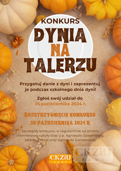 W tym roku po raz kolejny będziemy świętować Dzień Dyni! W środę 30 października będzie nam towarzyszyć wiele atrakcji. Wzorem ubiegłego roku zapraszamy do udziału w konkursie „Dynia na talerzu”.