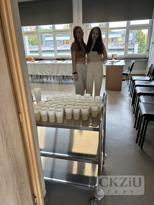 Ponadto w czasie przerw towarzyszyła nam muzyka, którą zapewnili chłopcy z klasy 3e - Jakub Falkowski i Aleksander Obłój. Nie zabrakło także smacznej niespodzianki - chętni mogli spróbować pysznego, jesiennego kompotu z dyni przygotowanego przez p. Agnieszkę Gorzawską.