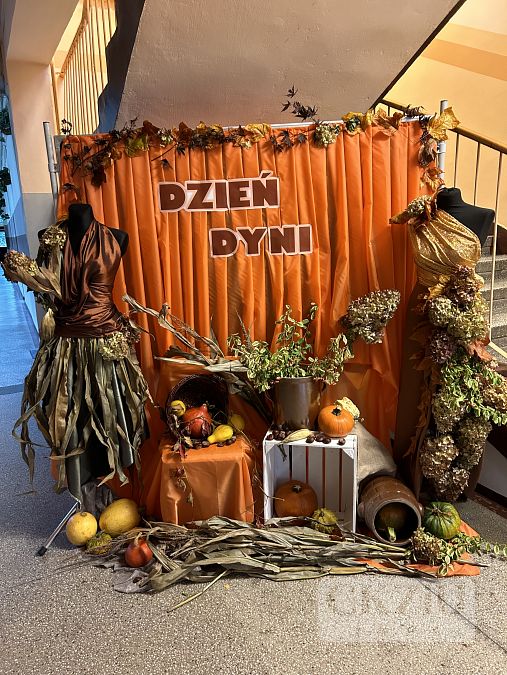Dzisiaj w naszej szkole zagościła piękna, złota jesień z królową dynią na czele! Samorząd Uczniowski po raz kolejny zorganizował Dzień Dyni, w ramach którego na uczniów czekało wiele atrakcji. Na parterze szkoły można było spotkać piękne dekoracje wykonane przez uczniów klas technikum mody wraz z p. Jolantą Bartnik-Mazur, p. Iwoną Żydek oraz p. Darią Rudnicką. Na korytarzach wszędzie dominował kolor pomarańczowy, żółty, czerwony i brązowy. Dziękujemy wszystkim uczniom, którzy włączyli się do zabawy i przygotowali na dzisiejszy dzień specjalne stylizacje, a w szczególności klasom 3cT, 4bT, 2aT, 3g, 2e oraz 1d, które najbardziej zaangażowały się w akcję.