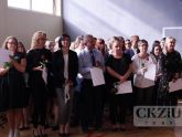 Dyrektor Centrum, pani Beata Kuźnik powitała na akademii wszystkich zgromadzonych, dziękując za liczne przybycie także emerytowanym nauczycielom. Pani dyrektor dziękując swoim pedagogom podkreśliła, jak trudnym i odpowiedzialnym zawodem jest zawód nauczyciela i zaakcentowała, że w pracy pedagoga ważna jest nie tylko wiedza i umiejętność nauczania, ale także zdolność kształtowania postaw młodych ludzi oraz cierpliwość i pasja. Dyrektor szkoły doceniła także pracę administracji i obsługi, przyczyniającą się do lepszego funkcjonowania szkoły. Następnie odbyło się wręczenie nagród dyrektora szkoły: