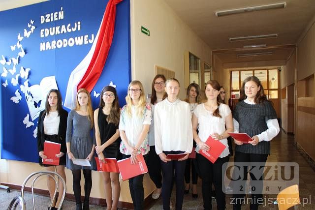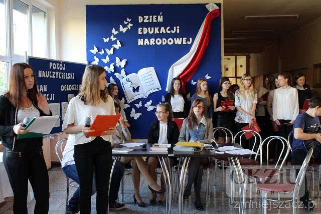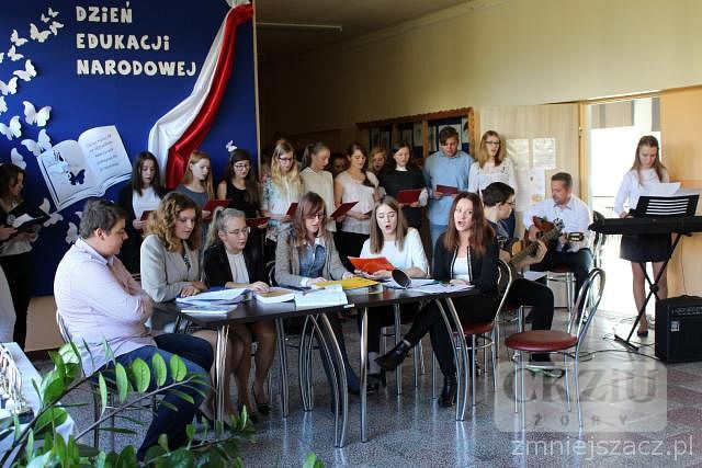 Dnia 14 października 2016 roku odbyła się w naszej szkole uroczysta akademia z okazji Dnia Edukacji Narodowej. Uczennice - Izabela Borgiel i Weronika Monin z klasy 3aT w imieniu Samorządu Uczniowskiego i społeczności szkolnej, podziękowały pedagogom za codzienny trud wkładany w nauczanie i wychowanie młodzieży. Następnie uczniowie przedstawili zabawne scenki ukazujące w krzywym zwierciadle szkolną rzeczywistość. Występy uczniów uświetnił chór szkolny, któremu akompaniował zespół w składzie: pan Adam Rojek - gitara, Kamil Banaś z klasy 1dZ - gitara, Dominika Koczar z klasy 1bT - instrumenty klawiszowe. Część artystyczną uczniowie zakończyli tradycyjnym wręczeniem nagród dla nauczycieli wyróżnionych przez społeczność uczniowską. W tym roku szkolnym kaganki otrzymały: