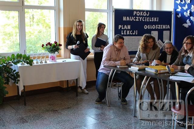 Program artystyczny przygotowany został przez klasy pierwsze technikum oraz klasę 3aT pod kierunkiem pań - Adriany Sieńkowskiej, Katarzyny Wronki i Anety Mrowiec.Oprawą scenograficzną zajęły się panie Iwona Żydek i Dorota Timler, a chór szkolny przygotował pan Adam Rojek. Dyrektor Centrum, pani mgr inż. Beata Kuźnik, dziękując swoim pedagogom podkreśliła, jak trudnym i odpowiedzialnym zawodem jest zawód nauczyciela, przekazała także życzenia, które otrzymała szkoła od Kuratorium Oświaty w Katowicach, Delegatury Kuratorium Oświaty w Rybniku oraz od Prezydenta Miasta Żory. Następnie odbyło się uroczyste wręczenie Nagród Dyrektora Szkoły.