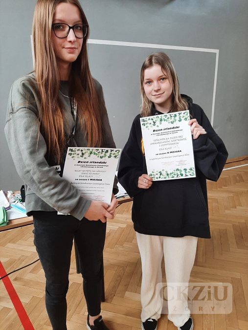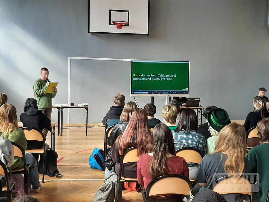 17.03.2022 r. w naszej szkole odbył się dzień irlandzki z okazji dnia Św. Patryka. Uczniowie klas I i II technikum zebrani w sali gimnastycznej oglądali prezentacje opisujące życie patrona Irlandii oraz ciekawostki o tym kraju. Młodzież rywalizowała w kilku konkurencjach, słuchała irlandzkiej muzyki oraz miała założone zielone elementy ubioru, symbolizujące Irlandię, ponieważ zieleń jest narodowym kolorem tej wyspy. Na koniec wyłoniono zwycięską klasę, która otrzymała nagrodę.