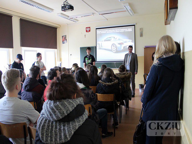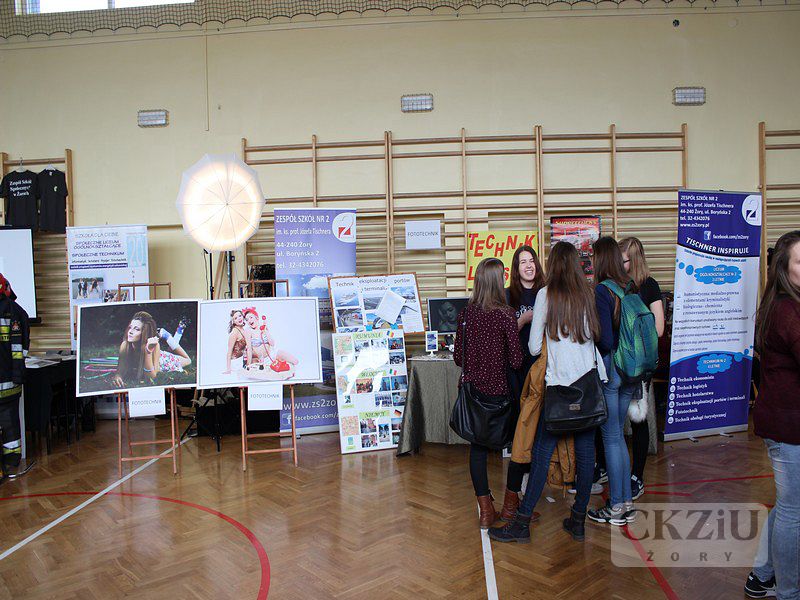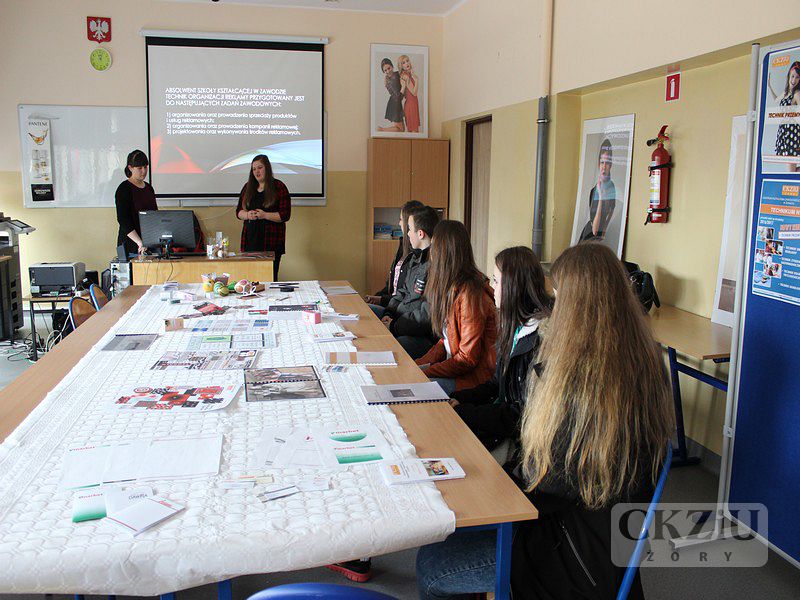 Dnia 21 marca 2016 r. w naszym Centrum odbył się Dzień Otwarty. Uczniowie żorskich i okolicznych gimnazjów mieli okazję do zwiedzenia i zapoznania się z bogatą ofertą edukacyjną naszej szkoły. Wycieczka po szkole zaczynała się od spotkania z doradcą zawodowym, który prezentował kierunki kształcenia, szkolne projekty oraz realizowane programy. Następnie uczniowie w asyście nauczycieli - przewodników zwiedzali pracownie naszej szkoły: gastronomiczną, obsługi konsumenta, fryzjerską, samochodową, krawiecką, handlową oraz pracownię reklamy. Patrząc na zadowolone miny wychodzących gości, można było przypuszczać, iż nasza szkoła wywarła na nich ogromne wrażenie, zwłaszcza pracownia gastronomiczna, gdzie zostali poczęstowani wypiekami naszych uczniów. Jednocześnie na sali gimnastycznej miały miejsce Targi Edukacyjne, podczas których żorskie szkoły ponadgimnazjalne przedstawiały własne oferty edukacyjne. Koordynatorem całego przedsięwzięcia była pani wicedyrektor Sylwia Maruszczyk, która współpracowała z zespołem d/s promocji Centrum oraz z pozostałymi nauczycielami naszej szkoły. Dziękujemy wszystkim, którzy zaangażowali się w organizację i uświetnienie tego ważnego dla każdej szkoły dnia.