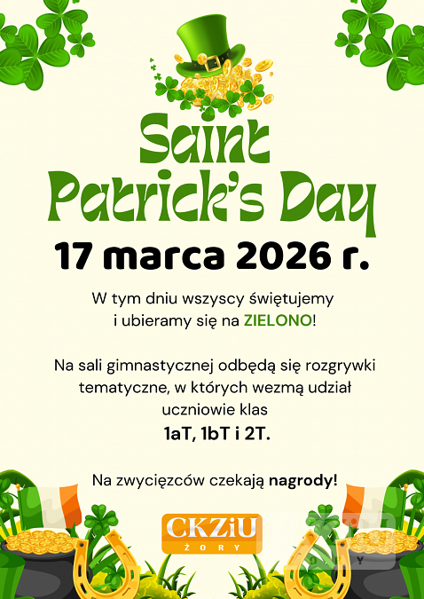 Już 17 marca 2026 r. świętujemy Dzień Świętego Patryka. Szczegóły na plakacie.