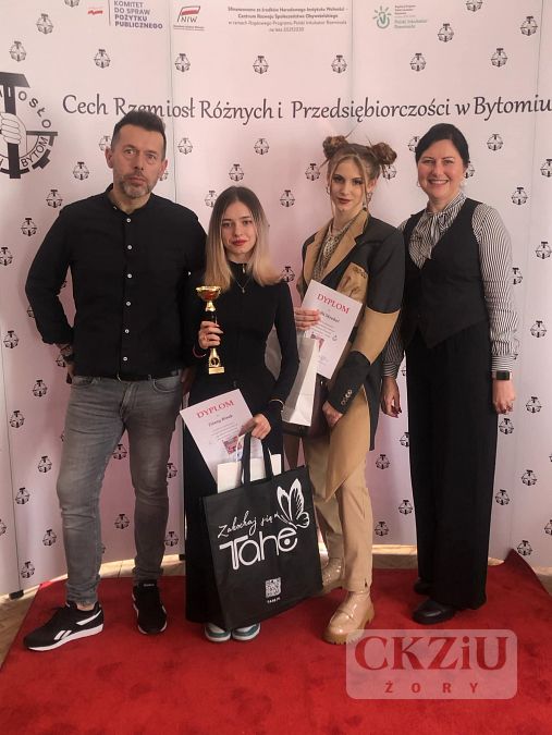 Dnia 10 marca br. w Bytomiu odbyły się eliminacje regionalne do XV edycji konkursu ogólnopolskiego Liga Młodych Kreatorów. Nasze Centrum reprezentowały stylistka Diana Biruk z klasy 4cT i fryzjerka Klaudia Piórek z klasy 1c. Temat tegorocznej edycji to "Biznes Fashion" Dziewczyny przygotowały oryginalne stylizacje, które profesjonalnie zaprezentowały modelki Zofia Skrobol i Daria Cherednichenko. Diana Biruk zdobyła 3 miejsce za swoją interpretację tematu. Gratulujemy serdecznie.