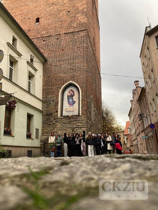 W dniach 23–27 października 2025 r. grupa uczniów z naszej szkoły uczestniczyła w warsztatach językowych EuroWeek, które odbyły się w Długopolu Dolnym. W drodze na warsztaty zatrzymaliśmy się w urokliwym miasteczku: Ząbkowicach Śląskich z bogatą, ale i mroczną historią miasta. Jest one znane przede wszystkim z Krzywej Wieży, która jest jedną z najsłynniejszych atrakcji turystycznych w tym regionie, to pozostałość po XIV-wiecznym kościele, który został częściowo zniszczony w wyniku pożaru. Wieża ma charakterystyczną krzywiznę, która była wynikiem trzęsienia i z pewnością dodaje uroku i tajemniczości temu miejscu.