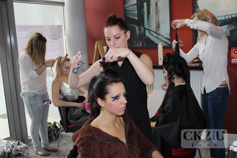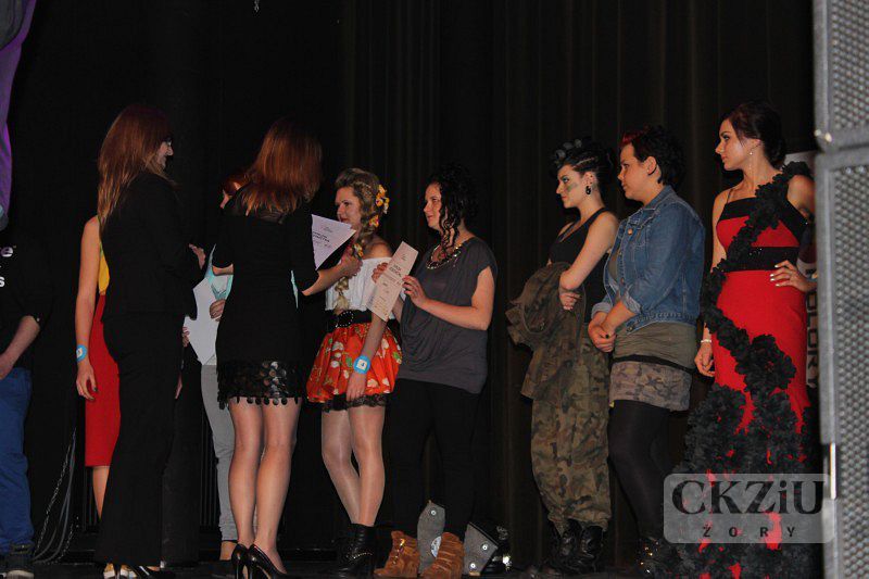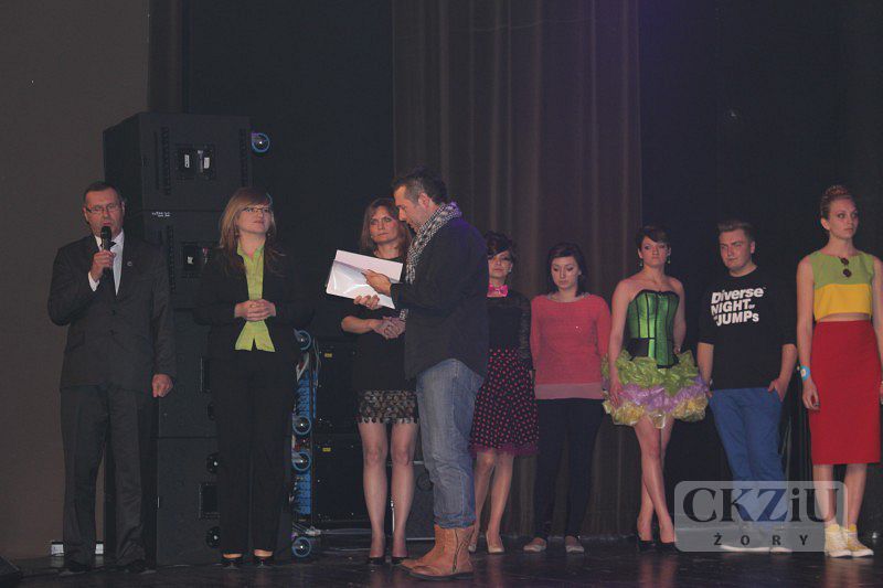 Dnia 14 kwietnia 2014 roku w kinie „Scena na Starówce” w Żorach, odbył się Finał Ligi Młodych Kreatorów. Organizatorem tegorocznego Finału było CKZiU w Żorach oraz koloryzacje.com, a organizacyjnie wspierał nas Cech Rzemiosł Różnych w Żorach i Żorska Izba Gospodarcza. Pan Prezydent Miasta Żory – Waldemar Socha objął Finał honorowym patronatem. Przedstawione podczas dzisiejszego Finału stylizacje zostały zaprojektowane i wykonane przez dziesięciu młodych stylistów. W tej edycji Ligi Młodych Kreatorów współzawodniczyli uczniowie ze szkół ze Świętochłowic, z Cieszyna, z Jastrzębia - Zdroju, ze Szkoły Społecznej z Żor oraz nasze Centrum. Każda szkoła wyłoniła po dwóch finalistów w eliminacjach szkolnych. Kreacji młodych stylistów nie powstydziłby się żaden wielki festiwal muzyczny. Imprezę poprowadził pan Maciej Wójciak, a swoimi występami finał konkursu uświetnili: Paulina Goranov, zespół Projekt X i zespół tancerzy prezentujących fragment spektaklu "Narodziny Wenus”. Naszą szkołę w konkursie reprezentowały Andżelika Kunicka z klasy 2f ZSZ i Manuela Frycz z klasy 2a T, które w przygotowaniach wspomagały panie: Justyna Pajor i Iwona Żydek. Manueli Frycz serdecznie gratulujemy zajęcia zaszczytnego 2 miejsca i życzymy dalszych sukcesów.