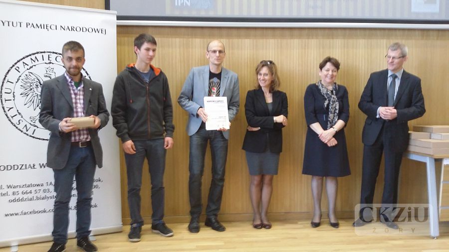 W dniu 28 maja br. uczniowie Filip Smoliński z klasy 3c Z oraz Łukasz Porwolik z klasy 3b Z wraz z panem Damianem Lejtą, brali udział w finale projektu edukacyjnego IPN "Kamienie Pamięci" w Białymstoku. Finał projektu składał się z części wystawienniczej,prezentacji prac projektowych oraz gali, na której uczestnicy otrzymali symboliczne statuetki - marmurowe kamienie, dyplomy i nagrody książkowe. W uroczystym podsumowaniu projektu, które swoją obecnością zaszczycił m.in. Abp Edward Ozorowski Metropolita Białostocki, wzięło udział około 300 osób: uczestników projektu i gości. Do tegorocznej, szóstej już edycji przedsięwzięcia, zgłosiło się w sumie 88 grup projektowych z różnych stron Polski, a także z Litwy i Stanów Zjednoczonych. Uczestnikami były głównie dzieci i młodzież oraz ich nauczyciele, ale do projektu włączyły się także osoby dorosłe. Upamiętniono w różnych formach (wystawy, prezentacje, filmy, wydawnictwa, a nawet komiks czy przedstawienie teatralne) 106 postaci. Każdy z bohaterów, podobnie jak w poprzednich edycjach projektu, zostanie również uhonorowany wirtualnym kamieniem na mapie przygotowanej na stronie www.pamiec.pl/kamienie_pamieci.Szczególne podziękowania dla Filipa Smolińskiego za oprowadzanie po Białymstoku oraz babci i dziadka Filipa, za strawę i ciepłe przyjęcie pod swój dach.