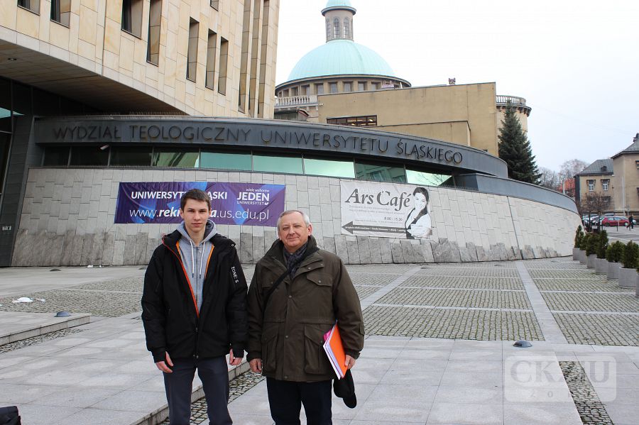 W związku z przystąpieniem do projektu edukacyjnego "Kamienie Pamięci", uczeń klasy 3b Z Łukasz Porwolik oraz pan Damian Lejta spotkali się w gmachu Wydziału Teologicznego Uniwersytetu Śląskiego z ks. dr hab. Henrykiem Olszarem. Ów ksiądz jako kierunek swoich naukowych badań obrał historię kościoła katolickiego na Śląsku. Jest autorem wielu książek, artykułów oraz biogramów w publikacjach zbiorowych i czasopismach, dotyczących działalności duchowieństwa katolickiego i struktur administracyjnych kościoła na Śląsku. Celem spotkania było zdobycie informacji na temat życia i działalności patriotycznej ks. Karola Brzozy. Była to niezwykła, bardzo ciekawa lekcja historii. Ks. dr hab. Henryk Olszar podarował także reprezentantom naszej szkoły książkę pt. "Ludzie tej ziemi", której jest autorem. To obowiązkowa pozycja przy podejmowaniu próby opracowania portfolio ks. Karola Brzozy. Kolejny wyjazd poświęcony zbieraniu śladów pamięci niebawem. Na przyjazd uczniów z żorskiego CKZiU oczekuje IPN Katowice oraz parafia Gorzyce. Osoby chcące włączyć się w realizację zadań związanych z projektem "Kamienie Pamięci" powinny zgłosić się do nauczycieli historii lub swoich katechetów.