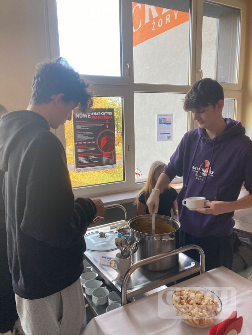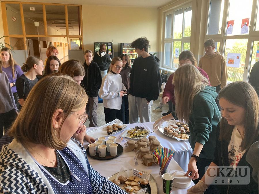 We wtorek 14 listopada odbył się kiermasz, na którym uczniowie klasy 2bT sprzedawali swoje produkty wykonane m.in. z dyni. Pojawiły się babeczki dyniowe i marchewkowe, ciasteczka, sernik dyniowy, kawa spicy pumkin latte, konfitury dyniowo-gruszkowe i dyniowo-pomarańczowe. Dużym powodzeniem cieszył się krem z dyni z grzankami. Podczas kiermaszu udało nam się uzbierać kwotę 1066, 21 zł, która zostanie przeznaczona na zakup prezentów świątecznych dla dzieci z domu dziecka. Wszystkim dziękujemy za włączenie się w akcję i mamy nadzieję, że podobne akcje pojawią się ponownie już wkrótce.