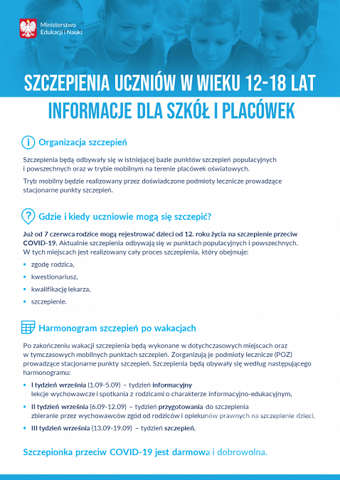 Poniżej zamieszczam przygotowany przez Ministerstwo Edukacji i Nauki pakiet informacyjny na temat szczepień przeciw COVID-19