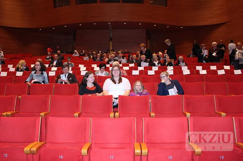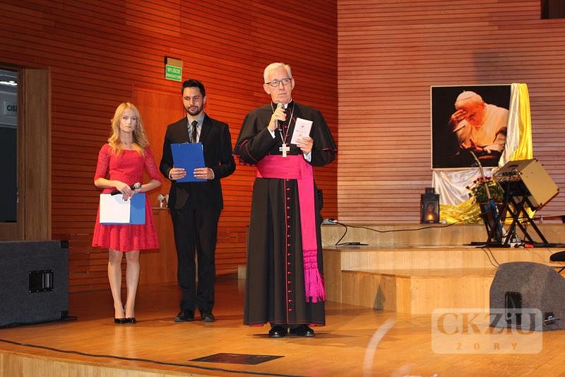 W dniu 26 października 2016 r. uczennice z klasy 2bZ Sandra Ślimakowska i Monika Jurczyga wraz z opiekunem panem Adamem Rojkiem uczestniczyły w koncercie galowym z okazji XVI Dnia Papieskiego „Jan Paweł II – Bądźcie świadkami miłosierdzia” w Akademii Muzycznej w Katowicach zorganizowanym przez wspólnotę studentów Fundacji „Dzieło Nowego Tysiąclecia”. Podczas koncertu wystąpili: Kwintet Dęty z klasy prof. dr hab. Wiesława Grochowskiego oraz zespół niemaGotu pod kierunkiem Jakuba Blycharza - twórcy hymnu Światowych Dni Młodzieży w Krakowie 2016. W tym wielkim wydarzeniu uczestniczyli również ks. Arcybiskup Metropolita Katowicki dr Wiktor Skworc, prezydent miasta Katowic oraz wiele innych osobistości. Po koncercie uczestnicy zostali zaproszeni na skromny poczęstunek, jak również mieli możliwość materialnego wsparcia programu stypendialnego Fundacji „Dzieło Nowego Tysiąclecia”. Stypendia przyznawane są zdolnej młodzieży pochodzącej z niezamożnych rodzin z małych miast i terenów wiejskich. Korzystając z okazji uczennice naszej szkoły, podążając z duchem czasu, zrobiły sobie selfie z Jego Ekscelencją Ks. Arcybiskupem Wiktorem Skworcem.