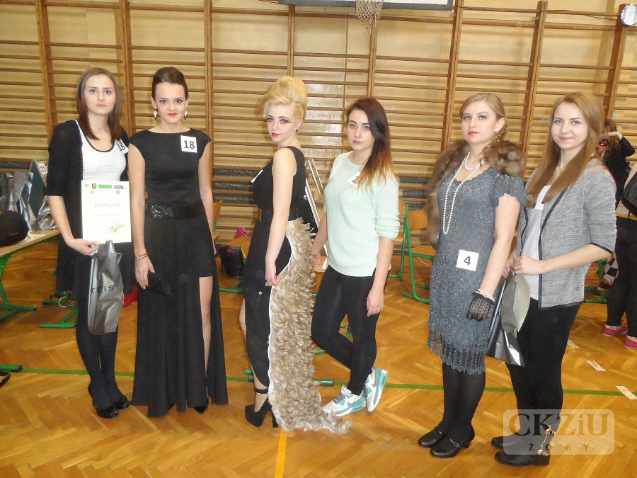 W dniu 13 marca 2015 r. nasze fryzjerki wystartowały kolejny raz w zmaganiach o najpiękniejszą fryzurę. Była to już IX edycja Konkursu Fryzjerskiego o Nagrodę Złotego Grzebienia w Zespole Szkół nr 5 w Rybniku. Tematem przewodnim była stylizacja historyczna z lat międzywojennych oraz stylizacja dla gwiazdy Hollywood. Nasze Centrum reprezentowały tym razem uczennice z klasy 2e Z, które na przygotowania miały zaledwie cztery dni. Modelkę w konkurencji historycznej uczesała Patrycja Badaczewska, zaś współczesne stylizacje stworzyły Marcelina Krupka i Patrycja Kalińska. Nad przygotowaniami czuwały: pani Justyna Pajor oraz pani Iwona Żydek. Uczennice wykazały się dużym zaangażowaniem i kreatywnością w tworzeniu swoich stylizacji i fryzur. Miały sposobność podpatrzeć swoich przeciwników podczas ich pracy. Mimo, że tym razem nie zdobyły żadnych nagród, to wiele zyskały dzięki udziałowi w tym przedsięwzięciu.