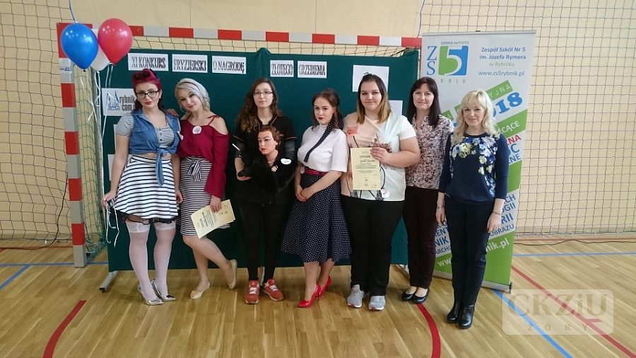 W czwartek 30 marca br. w Rybniku - Niedobczycach, po raz XI w ruch poszły szczotki i grzebienie. Młodzi adepci fryzjerstwa stanęli do konkursu, aby zawalczyć o najcenniejszą nagrodę - czyli "złoty grzebień". Tegoroczna edycja konkursu miała trzy kategorie. Pierwsza kategoria – Fryzura lat 50-tych XX wieku - została wykreowana przez Joannę Dziadek uczennicę klasy 1cZ. Joasia zdobyła I miejsce. Druga kategoria – Fale wyciskane na mokro na główce treningowej - kreowana przez Lucynę Tomczuk z klasy 3cZ, zajęła II miejsce. Trzecia kategoria – Pin up girl - fryzurę tą stylizowała Aleksandra Jarczok z klasy 2cZ, która zdobyła srebro. Dodatkowo Ola otrzymała nagrodę publicznośći. Wszyscy uczestnicy wykazali się dużymi umiejętnościami fryzjerskimi i kreatywnością. Dziękujemy reprezentantkom za udział w konkursie oraz życzymy kolejnych sukcesów fryzjerskich.