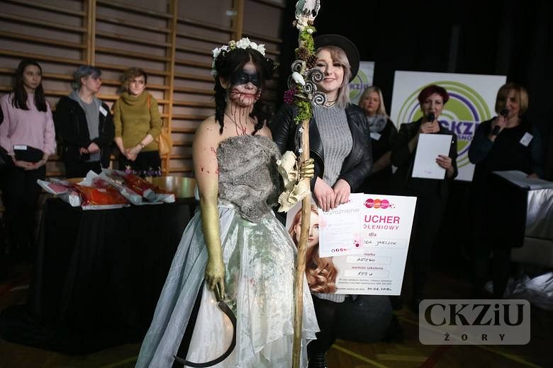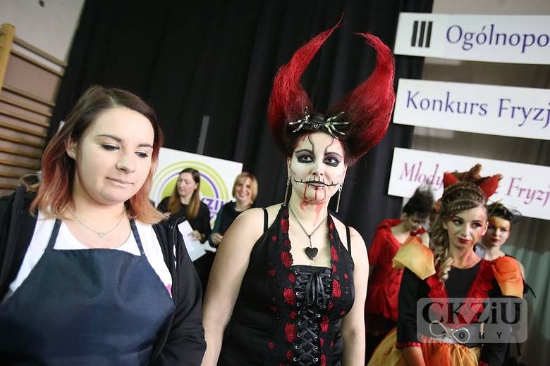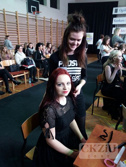 W tegorocznej edycji III Ogólnopolskiego Konkursu Fryzjerskiego "Młody Mistrz Fryzjestwa", który miał miejce w Sosnowcu, naszą szkołę reprezentowały: Aleksandra Jarczok z klasy 3cZ oraz Klaudia Krypczyk i Natalia Sekuła z klasy 2cZ. Reprezentacji CKZiU kibicowały uczennice z klasy 1c. Poziom konkursu był bardzo wysoki. Starowałó 36 uczestników z 16 szkół. Młodzi styliści fryzjerscy stworzyli bardzo oryginalne, demoniczne fryzury, używając często niezwykłych dodatków w postaci papryczek chilli, gałęzi, czaszek, rogów, drutu, a nawet elementów uformowanych z drobnej siatki ogrodzeniowej. Całość dopełniał ostry, przerysowany makijaż i równie diaboliczne, co i zmysłowe kusicielskie kreacje. Możemy pochwalić się wyróżnieniem przyznanym Aleksandrze Jarczok, która otrzymała od firmy Fale Loki Koki, voucher na profesjonalne szkolenie w Akademii Artego. Serdecznie gratulujemy i życzymy kolejnych sukcesów.