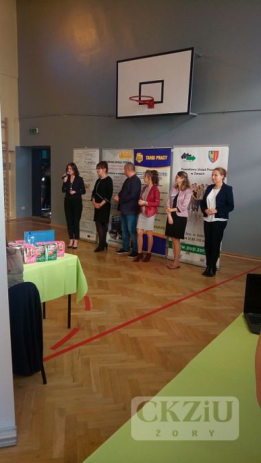 Targi pracy zainaugurowały Dyrektor Centrum Kształcenia Zawodowego i Ustawicznego Beata Kuźnik, zastępca Dyrektora Powiatowego Urzędu Pracy Małgorzata Celebańska, zastępca Dyrektora Centrum Kształcenia Zawodowego i Ustawicznego Renata Wieczorek, Jacek Arasim Dyrektor Żorskiego Centrum Organizacji Pozarządowych oraz Pośredniczka Pracy Elwira Wiechniak i Doradca zawodowy Beata Kromołowska.