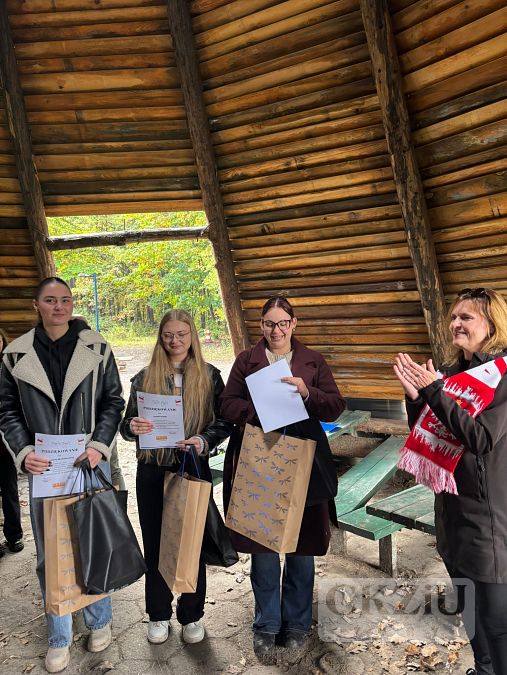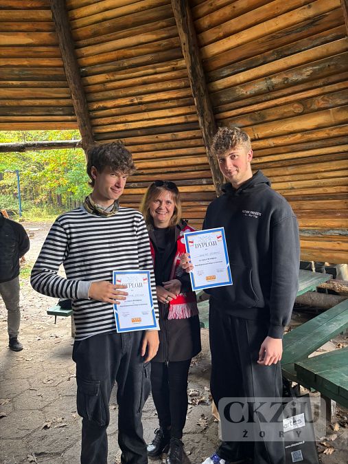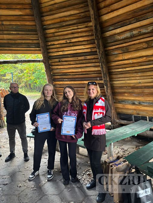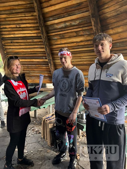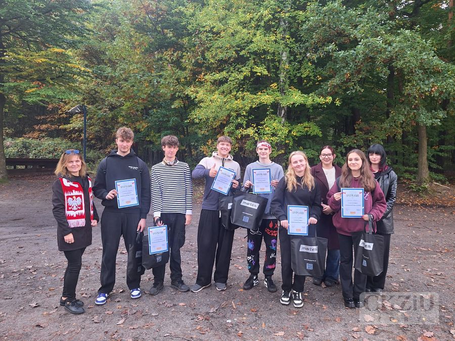 Uczniowie naszej szkoły w dniu 15 października 2025 r. wzięli udział w Niepodległościowym Biegu na Orientację CKZiU. Impreza odbyła się, jak co roku, na strzelnicy na Dębinie już po raz VII. Wszystkie zespoły dwuosobowe odbyły szkolenie, przeprowadzone przez pana Szymona Rojka, który przygotował trasę i mapki biegu. Gdy nadszedł czas startu drużyny ochoczo ruszyły z dwuminutowymi odstępami. Rywalizacja była zacięta, a wygrali ci, którzy popełnili najmniej błędów i mieli najlepszy czas. Po biegu wszyscy mogli napić się gorącej, jesiennej herbaty lub kawy (przygotowanej przez panią Agnieszkę Szwamberg), usmażyć na ognisku kiełbaski (które załatwił pan Adam Rojek) w oczekiwaniu na wręczenie nagród przez panią dyrektor Beatę Kuźnik. Wszyscy najedzeni, w wyśmienitych humorach (niektórzy po grzybobraniu) zebrali się nad ogniskiem i pani Katarzyna Wronka (po werblach) ogłosiła wyniki, pani dyrektor wręczyła dyplomy i nagrody. Dla niektórych był to pierwszy bieg, dla innych drugi, ale znalazły się w gronie zawodników trzy uczennice klasy 5cT, które brały udział po raz piaty i jest to niewątpliwy rekord (będzie trudny do pobicia albo chociaż do wyrównania) to Julka Domaradzka, Magda Modzelewska i Iza Dudek. WIELKIE GRATULACJE. Dziewczyny otrzymały super nagrody za wytrwałość, siłę woli i hart ducha.