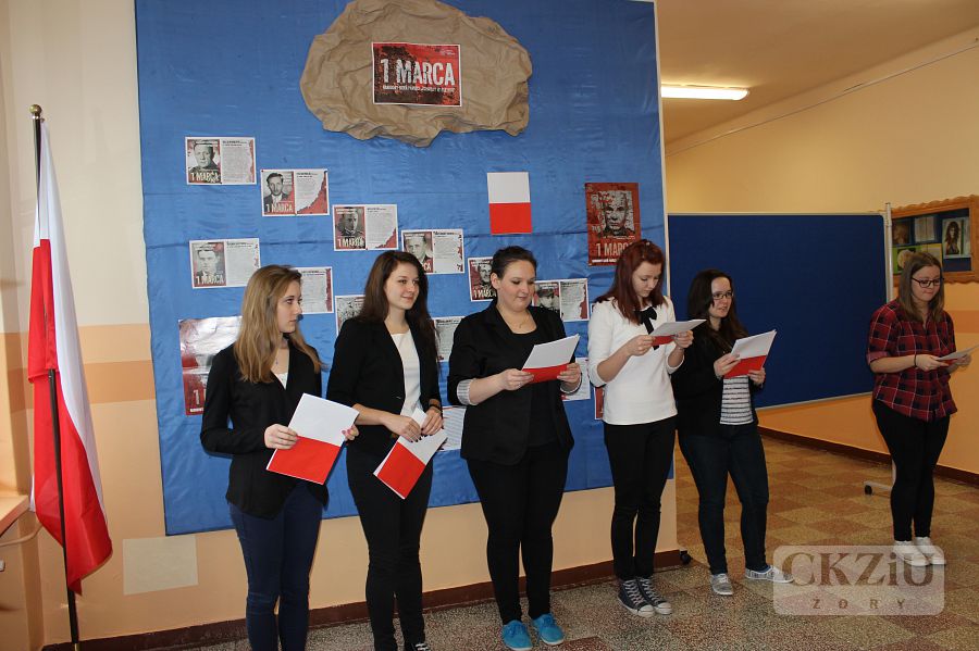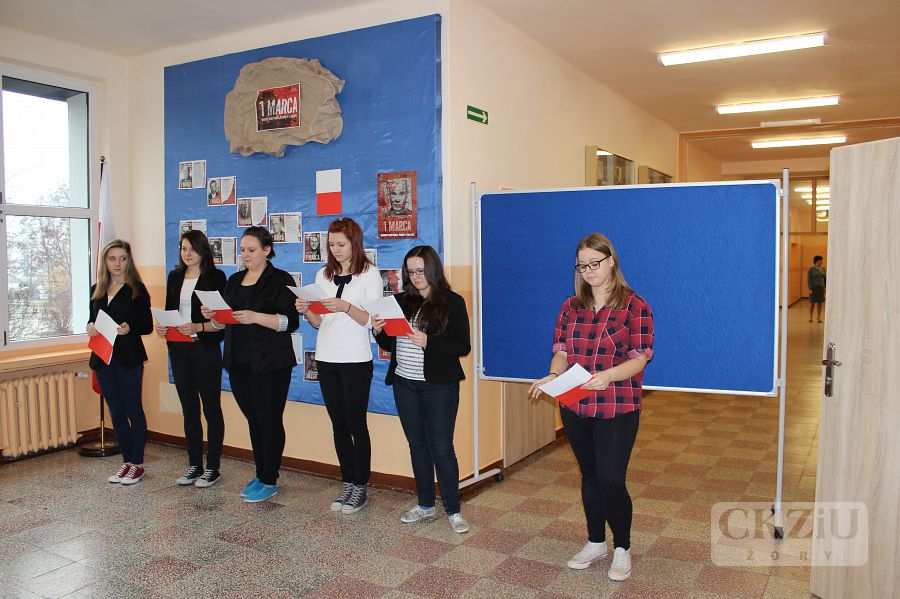 Dzień 1 marca to data upamiętniająca Żołnierzy Wyklętych. Z tej okazji w naszej szkole odbył się apel ku ich czci. Już po raz szósty Polacy obchodzą ten dzień, aby upamiętnić tych, którzy walczyli z władzą ludową i w bestialski sposób byli mordowani. Apel miał przybliżyć historię „wyklętych” i upamiętnić ich śmierć. Przez wiele lat dzieje Żołnierzy Wyklętych były zakłamywane lub przemilczane. Wzrost zainteresowania ich historią pomaga kształtować patriotyczną postawę i inspiruje na rzecz wspólnego dobra. Pamiętajmy o nich i ich poświęceniu. Apel przygotowały uczennice klasy 4bT oraz 1T pod kierunkiem pani Katarzyny Wronki.