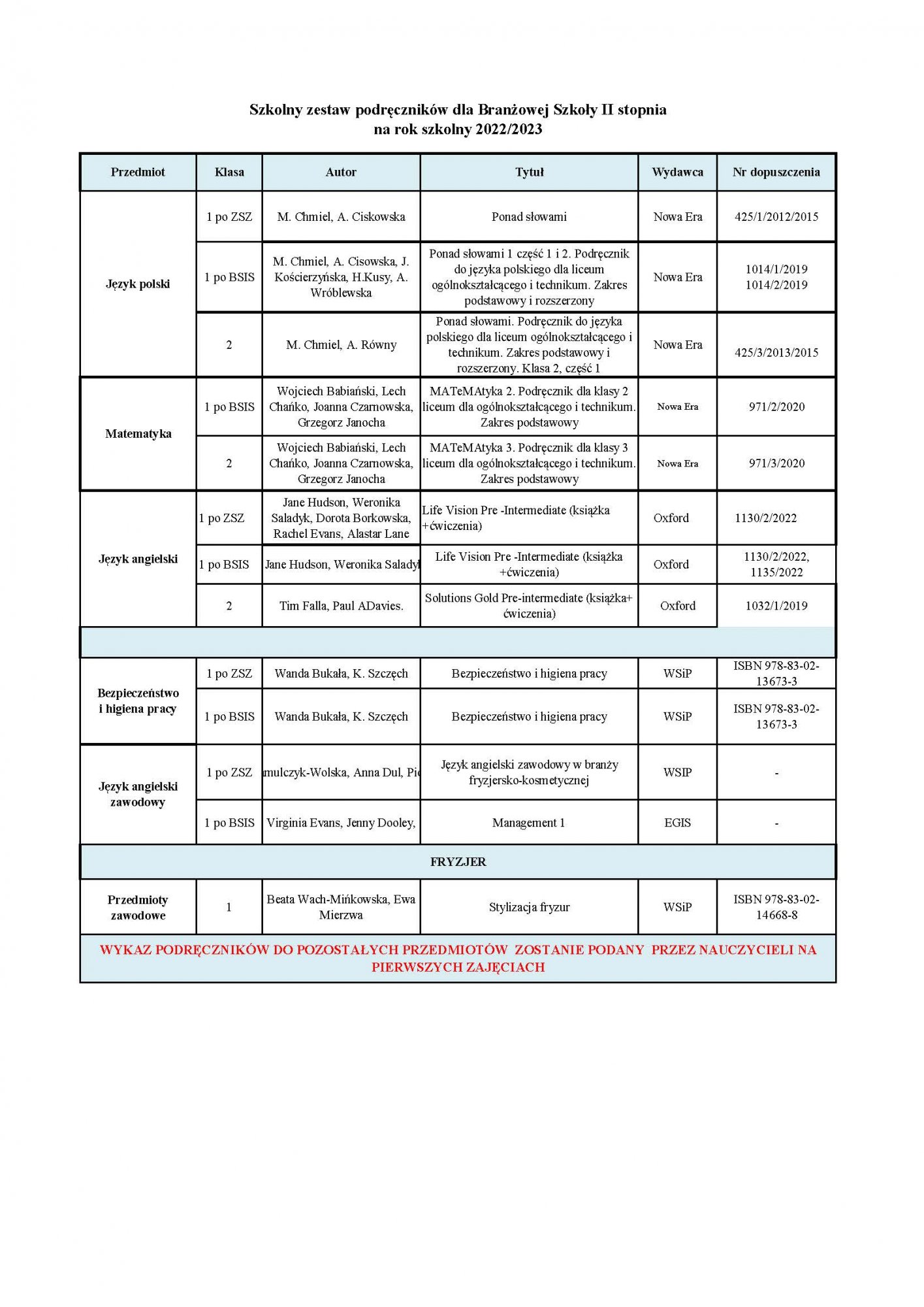 Podręczniki dla BS2S na rok szkolny 2022/2023 - powiększ zdjęcie