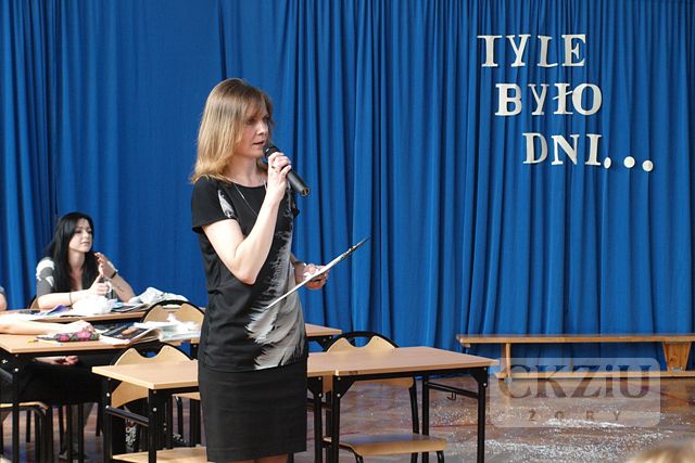 Dnia 25 kwietnia 2014 r. uroczyście pożegnaliśmy tegorocznych abiturientów Centrum Kształcenia Zawodowego i Ustawicznego – uczniów dwóch klas technikum: klasę 4a oraz klasę 4b. Po uroczystych wystąpieniach: pani Dyrektor mgr inż. Beaty Kuźnik, Przewodniczącej Rady Rodziców pani Lucyny Wowry - Śleziony oraz wychowawców obu klas pani mgr Sylwii Rośczak i pani mgr inż. Agnieszki Szwamberg, nastąpiło wręczenie nagród, dyplomów oraz wyróżnień dla najlepszych uczniów naszej szkoły. Uroczystość uświetnił artystyczny występ młodzieży naszej szkoły z klasy 3 technikum, która pożegnała swych starszych kolegów i koleżanki. Były ciepłe słowa i wiele podziękowań. Imprezę pożegnalną przygotowali nauczyciele: pani mgr Renata Wieczorek, pani mgr Joanna Wybraniec, pani mgr Adriana Sieńkowska i pan mgr Arkadiusz Kubica. Wszystkim abiturientom CKZiU serdecznie gratulujemy ukończenia szkoły.