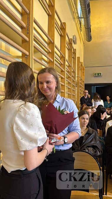 W czasie uroczystości nastąpiło również wręczenie uczennicy klasy 5bT - Matyldzie Weber Złotego Indeksu Akademii WSB. Nagrodę przekazała przedstawicielka Akademii WSB pani Honorata Potempa w uznaniu za wybitne osiągnięcia dydaktyczne uczennicy i jej aktywny udział w życiu szkoły.