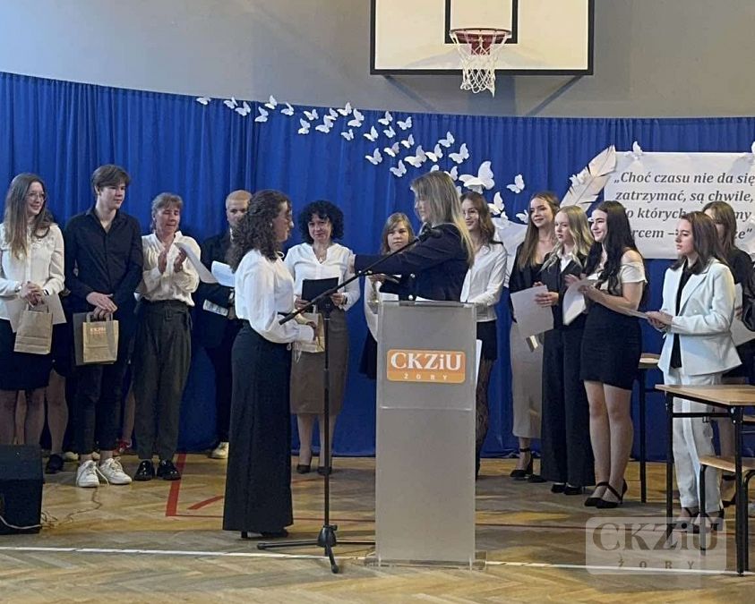 Na zakończenie absolwenci zostali obdarowani słodkimi wypiekami przygotowanymi przez uczniów klasy 4bT pod opieką Pani Agnieszki Szwamberg oraz otrzymali pamiątkowe teczki wykonane przez klasy 3cT i 4cT pod kierunkiem Pani Jolanty Bartnik-Mazur. Te gesty były pięknym zwieńczeniem wspólnie spędzonych lat.