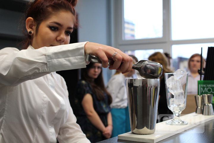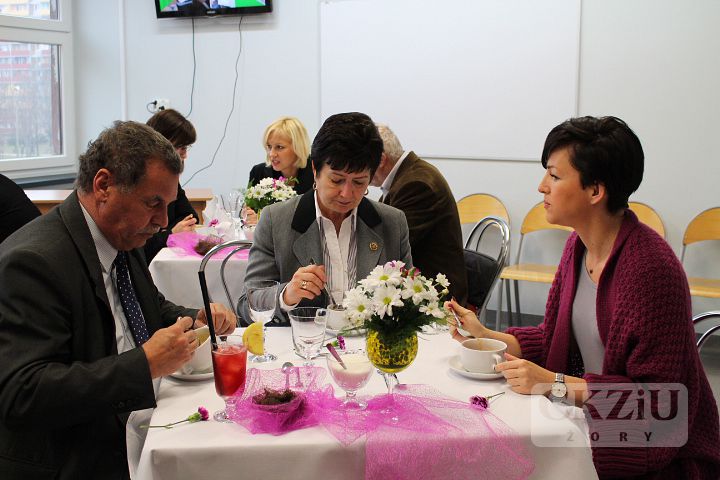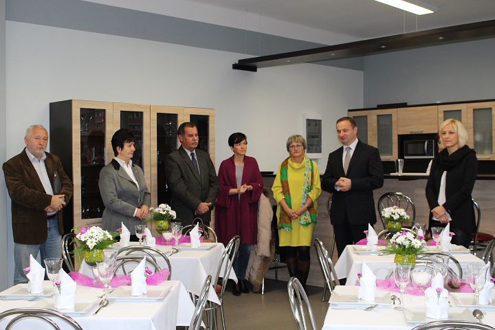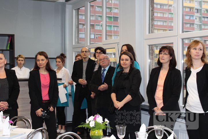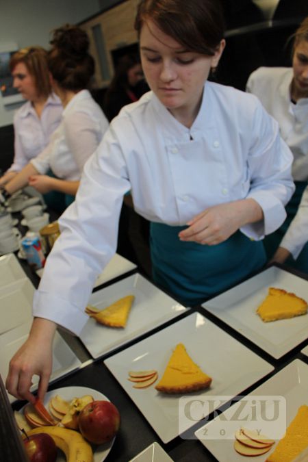 Pracownia jest wyposażona w profesjonalną ladę barową oraz niezbędne urządzenia i sprzęt: piekarnik, płytę grzewczą, zmywarkę, lodówkę, kuchenkę mikrofalową, blender barmański, wózek kelnerski, podgrzewacz talerzy oraz zastawę i bieliznę stołową. Oficjalnego otwarcia pracowni dokonał Prezydent Miasta Żory Pan Waldemar Socha. W uroczystości wzięli udział również: doradca Prezydenta ds. Infrastruktury – Pan Bronisław Pruchnicki, przedstawiciele Wydziału Edukacji – Pani Naczelnik Bożena Dąbrowska i Pani Anna Uszyńska - Janikiewicz, Naczelnik Wydziału Infrastruktury Miejskiej i Inwestycji – Pani Anita Materzok, przedstawiciel Zespołu Strategii i Rozwoju Miasta - Pani Iwona Kapustka oraz przedstawiciele Cechu Rzemiosł Różnych w Żorach – Podstarszy Cechu Pani Aniela Gałach i Sekretarz - Pan Emanuel Świerczek. Miło nam było również gościć Dyrektora byłego Zespołu Szkół nr 1 – Pana Andrzeja Pierchałę. Centrum Kształcenia Zawodowego i Ustawicznego reprezentowali: Dyrektor - Pani Beata Kuźnik, Wicedyrektorzy - Panie Sylwia Maruszczyk i Agnieszka Niedobecka, Kierownik Praktycznej Nauki Zawodu - Pani Bożena Długosz, Doradca Zawodowy - Pan Damian Lejta oraz nauczyciele przedmiotów gastronomicznych. Imprezę otwarcia pracowni przygotowały panie: Jolanta Cebula, Agnieszka Gorzawska i Agnieszka Szwamberg wraz z uczniami klas 1, 2 i 3 T oraz klasy 4 T. Uroczystość poprowadziła Izabela Szewczyk z klasy 3b T, dekoracją stołów i obsługą kelnerską zajęły się Jolanta Kucz z 3b T i Sylwia Słabik z 2 T. Pokaz barmański wykonała uczennica klasy 1b T Martyna Niesterok. Poczęstunek przygotowały Paulina Roszak i Gabriela Przeliorz z 4T, natomiast deser w postaci tarty dyniowej był dziełem Kingi Szulik i Agaty Wuzik z 2 T. Dziękujemy bardzo wszystkim uczniom za pracę włożoną w zorganizowanie tej uroczystości.