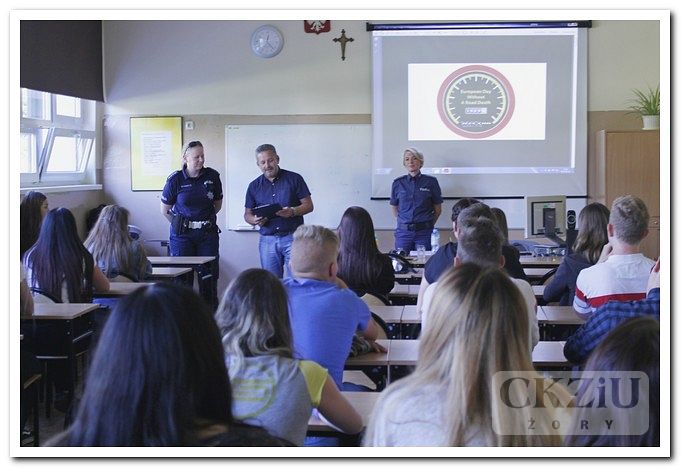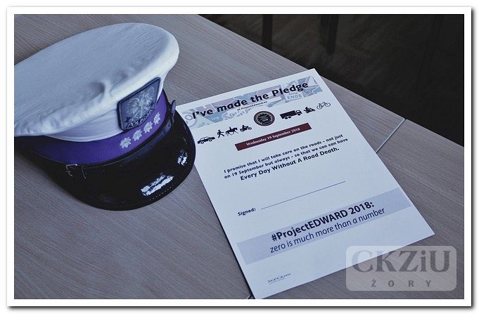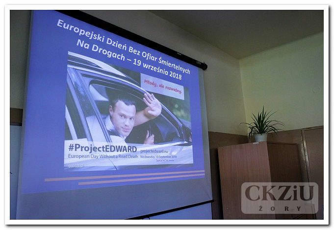 W dniu 19 września 2018r. odbyła się trzecia edycja akcji prowadzonej we wszystkich europejskich krajach pod nazwą EDWARD (European Day Without A Road Death). Ideą przewodnią projektu jest „wizja zero” czyli osiągnięcie zerowej ilości śmiertelnych wypadków na drogach, przynajmniej tego jednego dnia. W spotkaniu uczestniczyły policjantki – asp. szt. Agnieszka Ścibak oraz asp.szt. Kamila Siedlarz, które z młodzieżą rozmawiały na tematy przyczyn i skutków wypadków drogowych. Przyszli technicy organizacji reklamy opracowali m.in. oryginalne tematyczne plakaty, natomiast uczennice z klasy 2aT: Nikola Myszkowska, Wiktoria Klepek oraz Kaja Grela, specjalnie na tę okazję przygotowały spot edukacyjny„Cacy & niecacy na drodze“ ukazujący zarówno pożądane, jak i te nieprawidłowe zachowania w ruchu drogowym, który posłużył jako wstęp do dalszej dyskusji. Następnie panie policjantki w przystępny sposób przybliżyły statystyki policyjne, a także wskazały na zachowania jakie dla uczestników ruchu drogowego mogą się okazać tragiczne w skutkach. Dla zobrazowania niebezpiecznych sytuacji w ruchu drogowym zaprezentowały również materiał filmowy, który wcześniej był publikowany ku przestrodze na stronie internetowej komendy, a także zaprosiły do udziału w zabawie, której celem było uzmysłowienie młodym uczestnikom ruchu drogowego jak ogromna jest skala wypadków drogowych. Uczniowie mogli też doświadczyć jak alkohol działa na organizm człowieka i jak zmieniają się reakcje kierowcy, gdy zdecyduje się po nim wyjechać na drogę. Temu doświadczeniu posłużyły z kolei alkogogle imitujące stan nietrzeźwości w skali od 0,7 do 1,5 promila. Na zakończenie spotkania funkcjonariuszki zaprosiły uczniów do złożenia deklaracji dołączenia do działań na rzecz uczynienia europejskich dróg bezpieczniejszymi, co młodzież mogła potwierdzić własnoręcznym podpisem na okolicznościowych certyfikatach Projektu EDWARD.