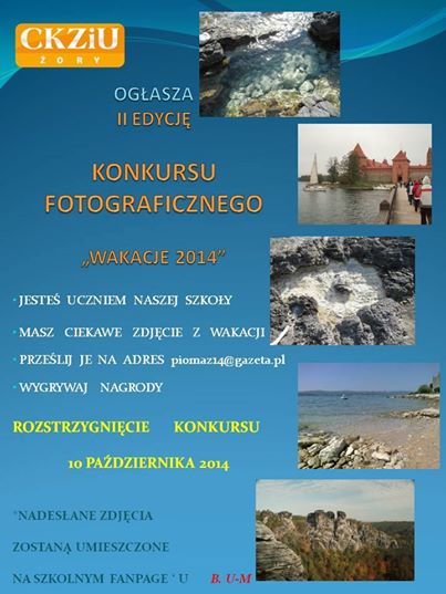 Dnia 10 października 2014 roku, rozstrzygnięto II edycję konkursu fotograficznego "Wakacje 2014". Jury pod przewodnictwem pani mgr Barbary Urbańczyk - Maziarek nagrodziło i wyróżniło następujące osoby: