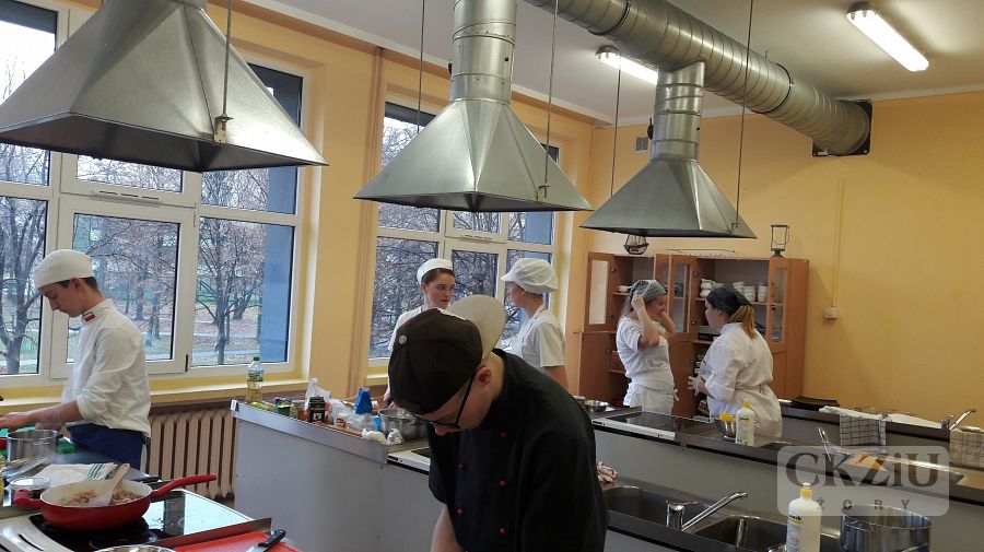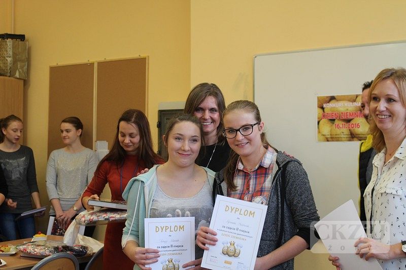 Dnia 16 listopada br. roku w naszej szkole odbyła się już trzecia edycja konkursu kulinarnego. Tym razem głównym bohaterem był ziemniak. Zmagania pod nazwą "Dzień Ziemniaka" zorganizowane zostały przez panie: Agnieszkę Szwamberg, Jolantę Cebulę i Agnieszkę Gorzawską. W konkursie wzięło udział pięć drużyn z klas: 1bT, 2T, 3bT, 4T i 2bZ. Rywalizacja polegała na przygotowaniu trzech porcji potraw z wykorzystaniem ziemniaka. Uczniowie oceniani byli nie tylko za walory organoleptyczne, ale również za oryginalność, pomysłowość, estetykę podania i technikę wykonania. Jury obradowało w składzie: pani wicedyrektor Sylwia Maruszczyk, pani pedagog Aneta Mrowiec, pan Robert Kuś - kucharz i właściciel domu przyjęć Ro-Jo oraz nauczyciele przedmiotów gastronomicznych. Po burzliwych obradach wyłoniono zwycięzców: