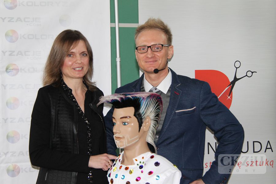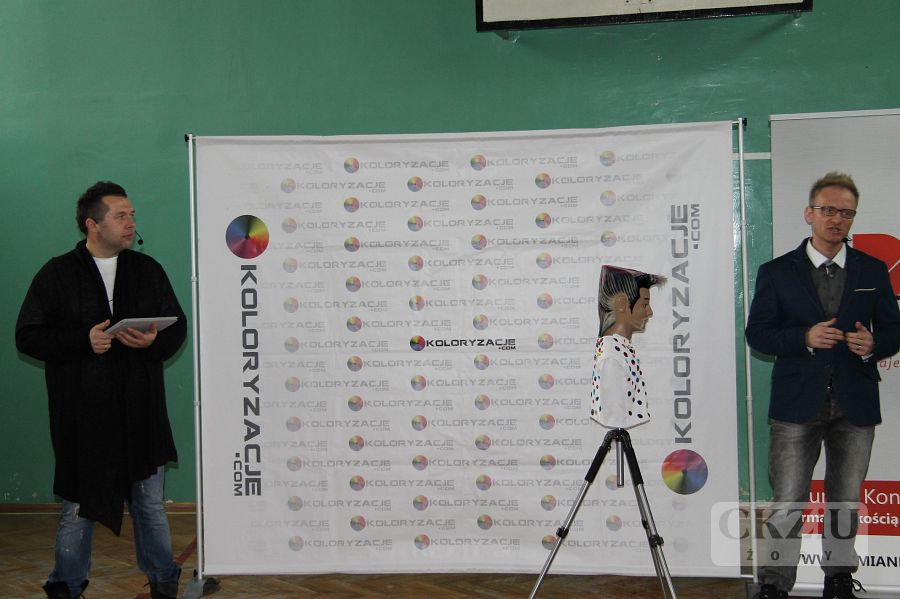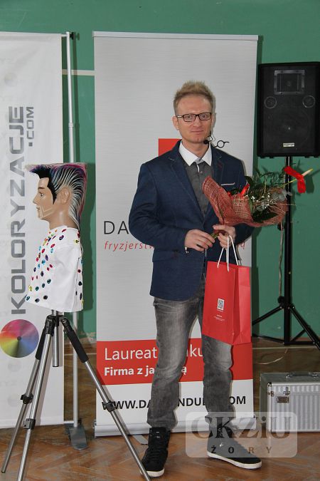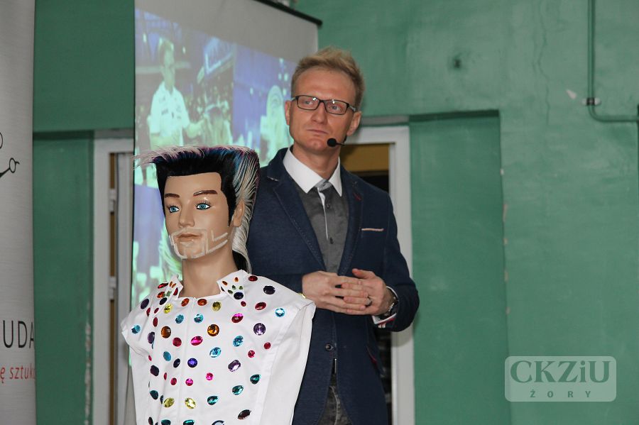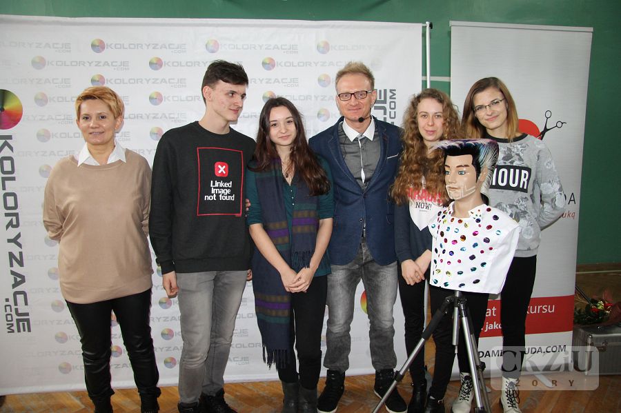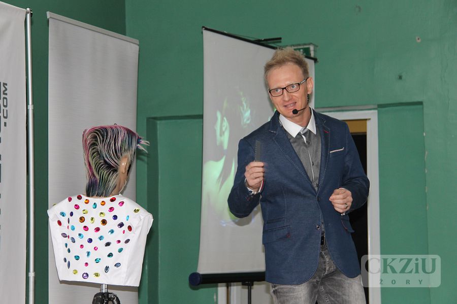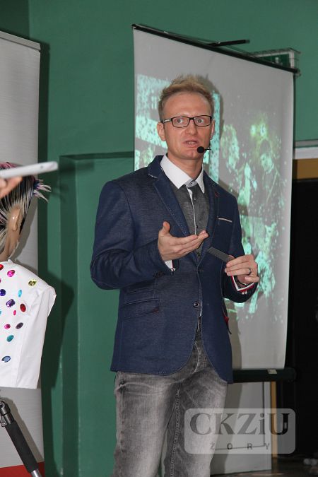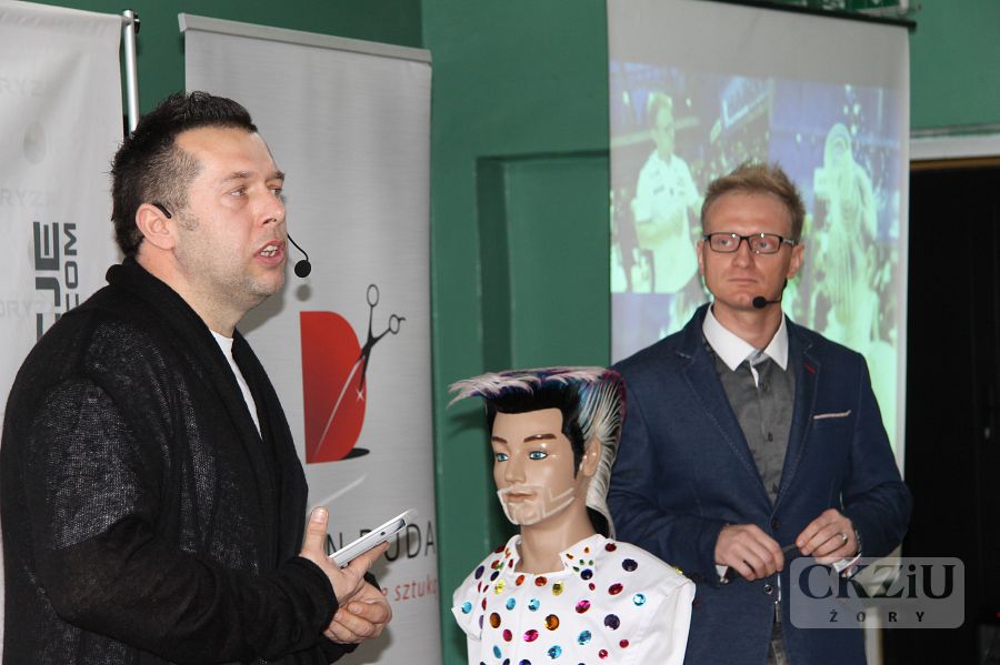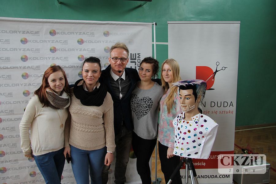 W dniu 19 stycznia br. w naszym Centrum miało miejsce niecodzienne wydarzenie. Gościliśmy Wicemistrza Świata we fryzjerstwie pana Damiana Dudę z Rudy Śląskiej. W tym prestiżowym, jedynym w swoim rodzaju spotkaniu, oprócz naszych uczniów klas fryzjerskich, wzięło udział ponad stu uczniów przybyłych aż z Wadowic, Andrychowa, Bielska-Białej i Rybnika. Spotkanie poprowadzone w formie wywiadu, inicjował pan Maciej Wójciak. Uczniowie mieli sposobność poznać niezwykłą ścieżkę kariery zawodowej pana Damiana, od ucznia do mistrza. Pan Duda mówił o trudnych początkach, o porażkach i sukcesach. Opowiadał jak zdobywał liczne nagrody i tytuły na Mistrzostwach Śląska, a później Tytuł Mistrza Polski w Poznaniu w 2012 roku. Po wielu podejściach dostał się do Kadry Narodowej Polskich Fryzjerów i zaczął reprezentować nasz kraj w konkursach międzynarodowych. Wraz z kolegami z kadry, zdobył tytuł Wicemistrza Świata Fryzjerstwa w 2014r. we Frankfurcie. Dziś jest uznanym fachowcem. Czesze znane gwiazdy, przygotowuje modelki do pokazów w Mediolanie, Paryżu i w wielu innych słynnych miejscach związanych z modą. Prowadzi ponadto własny salon w Wirku – dzielnica Rudy Śląskiej i szkoli uczniów oraz dorosłych fryzjerów. Uczniowie przekonali się, że można osiągnąć bardzo wiele dzięki wytrwałej pracy, konsekwencji i uporze w dążeniu do realizacji swoich celów. Mistrz zaznaczył jak ważna jest: wytrwała nauka, udział we wszelkich dostępnych formach podnoszenia kwalifikacji, uczeniu się od starszych, bardziej doświadczonych specjalistów. Ważna jest także przyjaźń, pomoc innym, a także wspieranie potrzebujących. Pan Damian opowiadając o sobie użył też mądrych słów: ,,Dobro do nas powraca”. Mimo wielu sukcesów, sam nie zapomina o potrzebujących i udziela się społecznie. Może dzięki temu, jak sam zauważył, jest w tym miejscu w którym jest. Jego dewizą jest podążanie za marzeniami i niezwykła konsekwencja w drodze do ich realizacji. Przy czym zaskakujące jest, że pozostał człowiekiem niezwykle skromnym i życzliwym. Uczniowie uczestniczący w spotkaniu byli pod dużym wrażeniem tej niezwykłej osobowości. Na zakończenie mieli okazję zrobić sobie zdjęcia z mistrzem, który chętnie i cierpliwie do nich pozował.