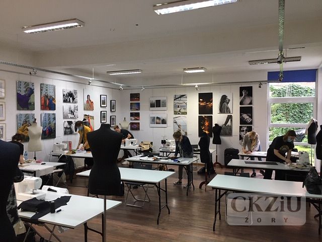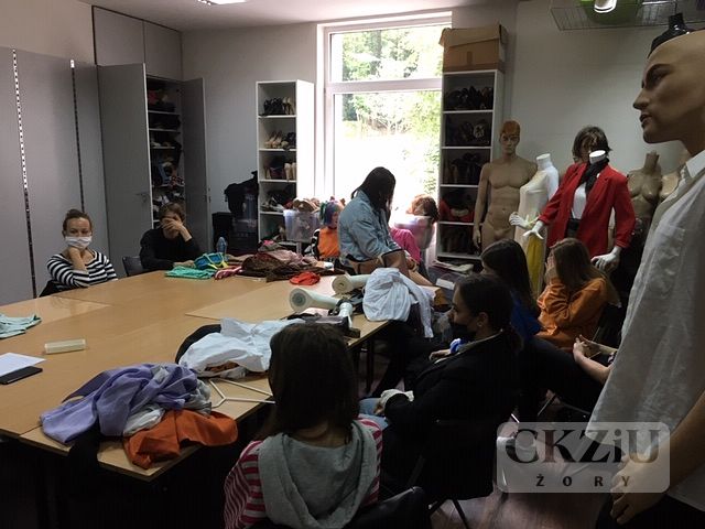Równolegle odbywały się w KSA warsztaty stylizacji ubioru, przygotowane specjalnie dla naszych uczniów przez wykładowczynię Szkoły Artystycznego Projektowania Ubioru p. Magdalenę Kęskiewicz. Nasi młodzi projektanci tworzyli pod okiem specjalistki modne stylizacje oraz zdobywali wiedzę na temat prezentacji stworzonych przez siebie modeli. Całość zakończyła się sesją zdjęciową.