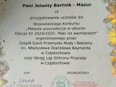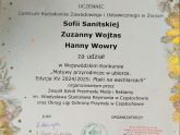 Gratulujemy zdobycia I miejsca Marcie jak również pozostałym uczestniczą Zuzi, Hani i Sofii za wspaniałe prace, za które dostały podziękowania wraz z opiekunem Jolantą Bartnik-Mazur.