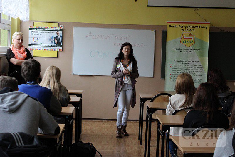 W dniach 17-21 listopada 2014 roku po raz siódmy został zorganizowany w Polsce Światowy Tydzień Przedsiębiorczości, obchodzony jednocześnie w 143 krajach świata. W naszej szkole codziennie odbywały się spotkania uczniów z lokalnymi przedsiębiorcami oraz przedstawicielami instytucji wspierających prowadzenie działalności gospodarczej. Uczniowie mieli niepowtarzalną okazję przeżyć praktyczną lekcję przedsiębiorczości ”Biznes przy tablicy”. Celem ŚTP jest stworzenie środowiska społecznego, które aktywnie wspiera przedsiębiorcze postawy i inicjatywy młodych ludzi oraz przygotowuje uczniów do wejścia na rynek pracy.