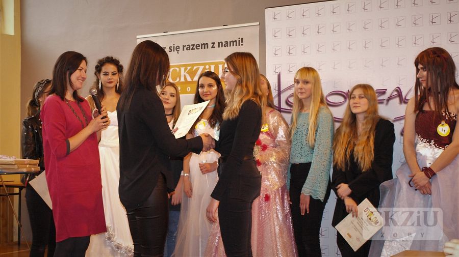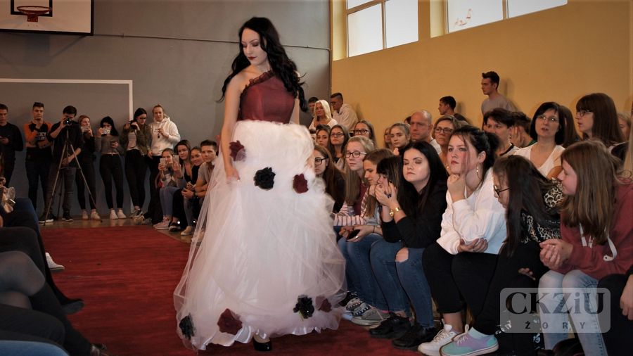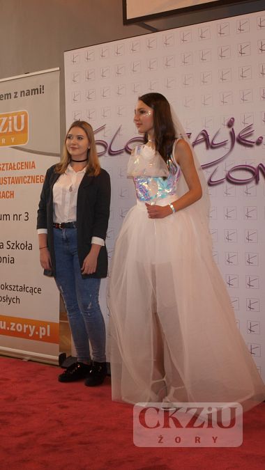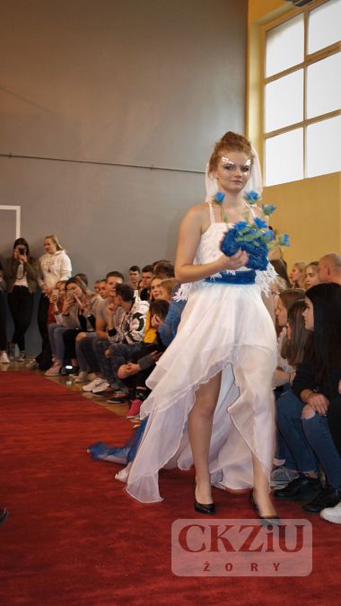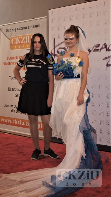 W drugim konkursie brali udział uczniowie kształcący się w zawodzie technik przemysłu mody. Młodzi styliści mody przygotowali osiem własnych propozycji stylizacji dla panny młodej. Co prawda nie wszystkie można było uznać za awangardowe, ale modelki zdecydowanie zaprezentowały sie zjawiskowo. Szczególne gratulacje należą się uczennicom z klasy 1aT, które mimo krótkiego "stażu w branży", bardzo kreatywnie podeszły do tematu. Tak trzymać!!!. Według Jury najlepiej spisała się Wiktoria Kałuża z 3aT, drugie miejsce zajęła Oliwia Fajkis, uczennica z 1aT, a na miejscu trzecim uplasował się Paweł Owczorz z 3aT, który dodatkowo został nagrodzony wyróżnieniem ufundowanym przez przewodniczącą jury panią Jolantę Bartnik- Mazur. Pani Jolanta jest projektantką i technologiem odzieży, właścicielką firmy odzieżowej szyjącej suknie ślubne i wizytowe, do której to zaprosiła Pawła na staż. Zwycięzcom serdecznie gratulujemy i życzymy dalszych sukcesów w projektowaniu i tworzeniu oryginalnych stylizacji.