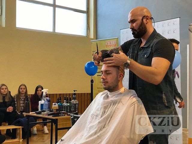 W dniu 4.02.2019 r. uczniowie klas 1c i 3cZ kształcący się w zawodzie fryzjer, wzięli udział w szkoleniu barberingu. Gościem specjalnym był jeden z najlepszych w Polsce barberów – Dawid Kawczyński – laureat konkursów Top City Barber, właściciel Studia Fryzjerskiego Dawid Kawczyński & BarberShop. Podczas szkolenia uczniowie mieli możliwość poznać: narzędzia, przybory i aparaty Barbera, a co najważniejsze podpatrywali techniki pracy mistrza. Pan Dawid zaprezentował trzy strzyżenia męskie, trzy strzyżenia bród, golenia bród z użyciem gorących kompresów i żelu zmiękczającego oraz wzorki artystyczne. Przyszli adepci sztuki fryzjerskiej byli bardzo zadowoleni z szkolenia. Czekamy na kolejne szkolenia.