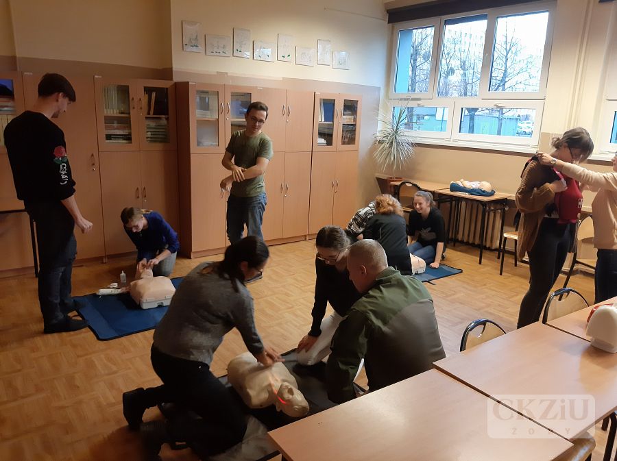W ramach projektu realizowanego przez STOWARZYSZENIE RODZICÓW I NAUCZYCIELI „WSPÓLNOTA RODZINNA” W ŻORACH, 03 grudnia 2019 r. w naszej szkole odbyło się szkolenie „Technika i taktyka w przypadku aktu bandytyzmu, pierwsza pomoc”. Szkolenie zostało skierowane do rodziców i uczniów klas czwartych oraz nauczycieli uczących w CKZiU w Żorach. W czasie szkolenia trenerzy zrzeszeni w Stowarzyszeniu Instruktorów Służb Mundurowych przekazali wiedzę z zakresu zasad postępowania w sytuacjach zagrożenia, oceny sytuacji w zależności od rodzaju napaści oraz podstawowych technik samoobrony. Poprzez ćwiczenia praktyczne wszyscy mieli okazję przypomnieć sobie i utrwalić zasady pierwszej pomocy oraz zasady wzywania pomocy i sposoby służące minimalizowaniu szkód podczas napadu. Dziękujemy wszystkim rodzicom, którzy odpowiedzieli na nasze zaproszenie oraz uczniom z klas 4aT i4bT Technikum nr 3 za aktywny udział w szkoleniu.