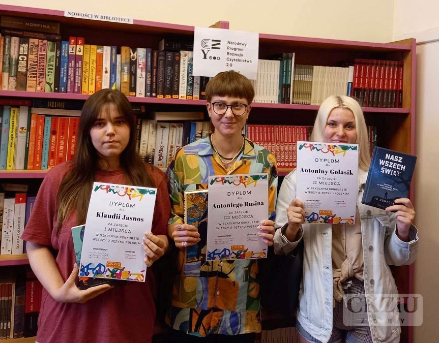Konkurs przygotowały i przeprowadziły: p. Dorota Timler, p. Anna Krosny-Dudkiewicz i p. Katarzyna Szestak. Uczestnicy otrzymali nagrody książkowe pozyskane z dofinansowania w ramach Priorytetu 3 Narodowego Programu Rozwoju Czytelnictwa 2.0.