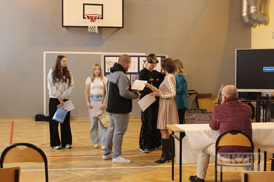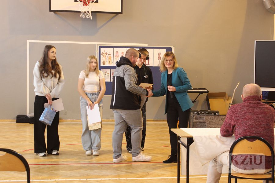 Dnia 24 listopada odbył się w naszej szkole konkurs „Mam talent” gromadząc uczniów pełnych pasji i kreatywności. Na scenie zaprezentowano różnorodne występy. Śpiewem ugościli nas: Kacper Bida z klasy 2d, który zaśpiewał jedną z piosenek Franka Sinatry, a także duet Amelii Hapak z kl.3cT wraz z naszym absolwentem Tomaszem Dajką, który towarzyszył jej tworząc oprawę muzyczną. Swój talent zaprezentowała także Emilia Snopek z kl.3cT, która opowiedziała o swych rysunkach, projektach, oraz udziale w konkursach dla młodych projektantów. Kolejna uczestniczka Karolina Dawid z kl.3c wyrecytowała w języku łacińskim modlitwy „Zdrowaś Maryjo” oraz „Ojcze nasz”. Na koniec zaprezentował się wicemistrz Polski kendamy Gabriel Szymański z kl.1e. Publiczność żywo reagowała na każdy występ, a jury miało trudne zadanie wyłonienia uczestników, którzy wezmą udział w międzyszkolnym konkursie „Mam talent” już 8 grudnia. Po obradach jury zdecydowało, że do kolejnego etapu przejdą: Emilia Snopek, Kacper Bida i Gabiel Szymański.