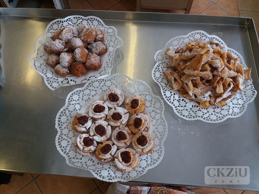 W Tłusty Czwartek zapachniało znakomitymi wypiekami. Pani Jolanta Cebula wraz z trzecią klasą technikum żywienia i usług gastronomicznych zaangażowała się w przygotowanie licznych smakołyków. Uczniowie klasy 3bT pod czujnym okiem pana Krzysztofa Zielonki przyrządzili pyszne faworki, pączki i piękne róże karnawałowe.