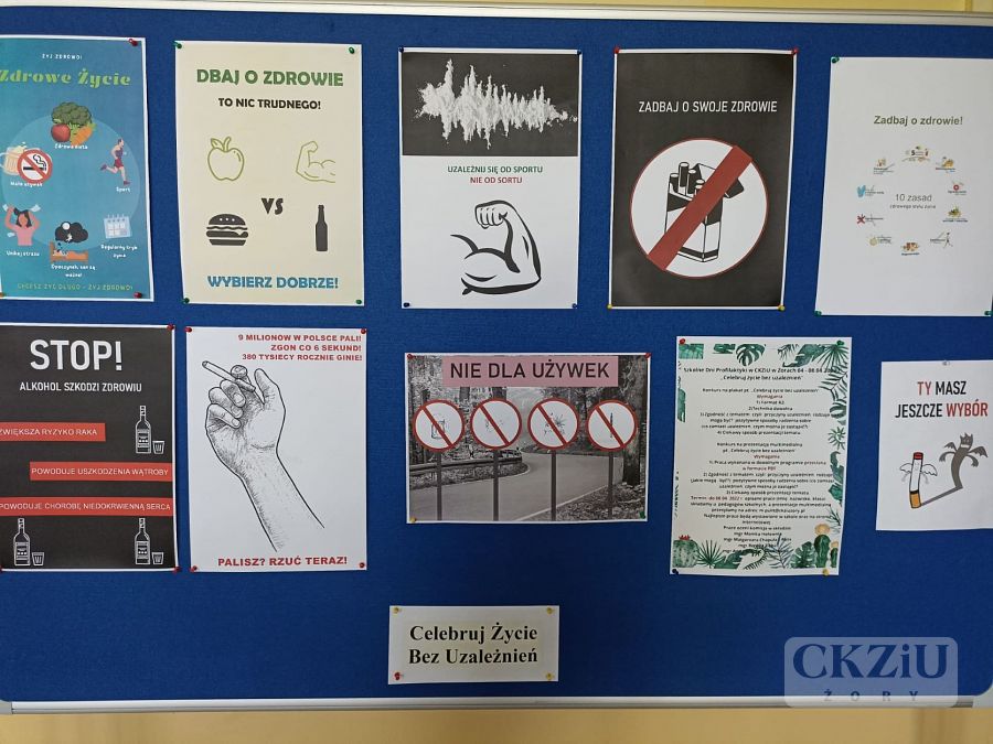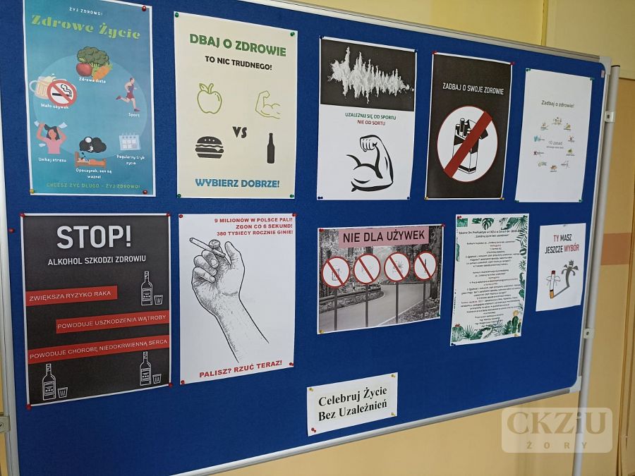 W dniach 04.04. – 08.04. 2022 r. w naszej szkole obchodziliśmy Szkolny Tydzień Profilaktyki pt. „Celebruj życie bez uzależnień”. Uczniowie na zajęciach z wychowawcami omawiali tematykę związaną z życiem wolnym od uzależnień. W szkole zorganizowano konkurs na pracę dotyczącą zdrowego życia bez nałogów Na konkurs prace wykonali: Oliwia Pałka 4aT, Oliwier Bednarek 2aT, Magdalena Wyględowska 1bT, Julia Kloc 2bT i jeden uczeń pragnący zachować anonimowość. Prace na temat wolności od uzależnień wykonali również uczniowie klasy 3aT w ramach lekcji grafiki reklamowej. Prace są do obejrzenia w galerii zdjęć. Wybrane klasy III wzięły udział w prelekcji i koncercie w Kinie na Starówce. To wydarzenie zostało zorganizowane z inicjatywy KMP w Żorach oraz władz miasta. Do celebrowania życia bez używek młodzież przekonywał youtuber Kacper Blonsky. W sumie wzięło w tym wydarzeniu udział około 750 uczniów żorskich szkół średnich, w wieku od 16 do 18 lat, z naszej szkoły w imprezie uczestniczyło 125 osób. Prace naszych uczniów zostaną również zaprezentowane poza szkołą przy okazji zawodów w wędkowaniu.