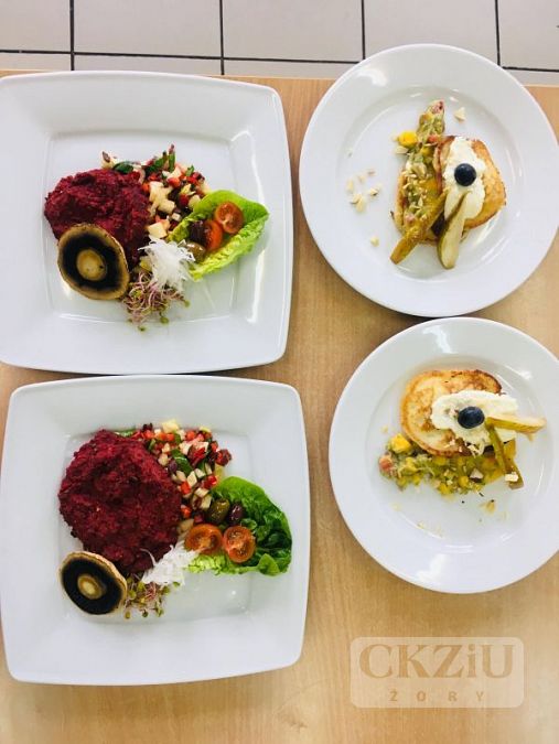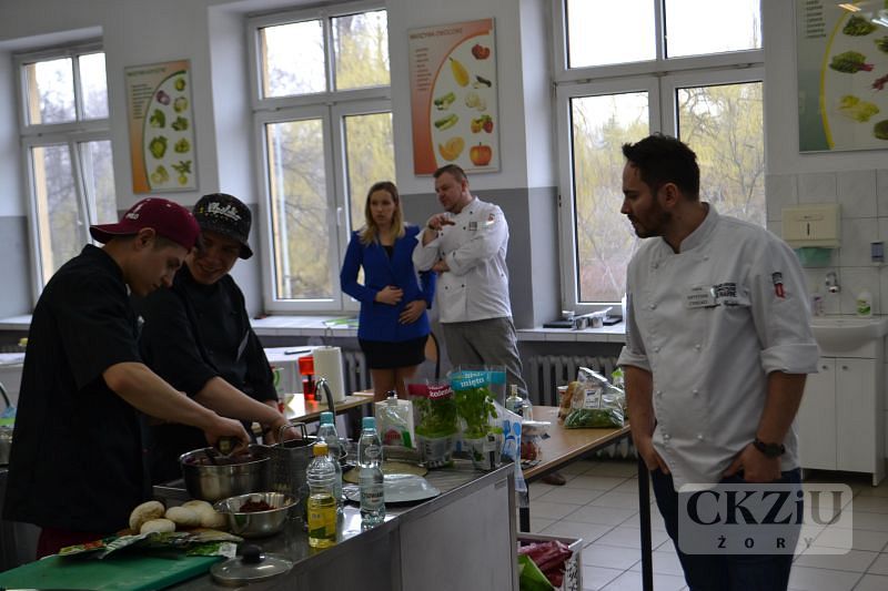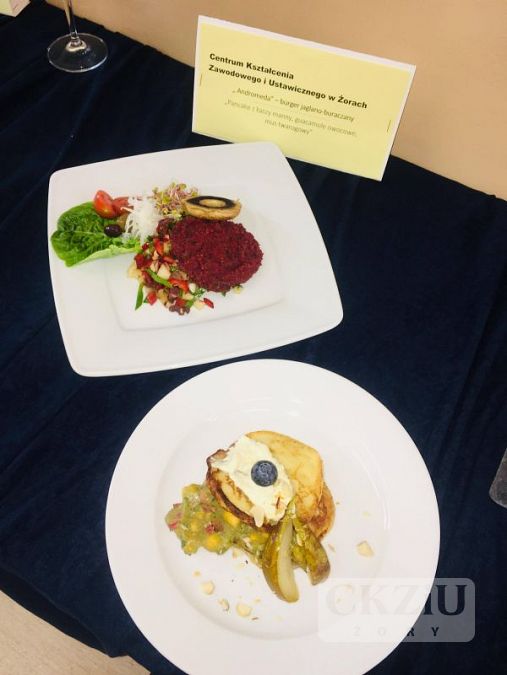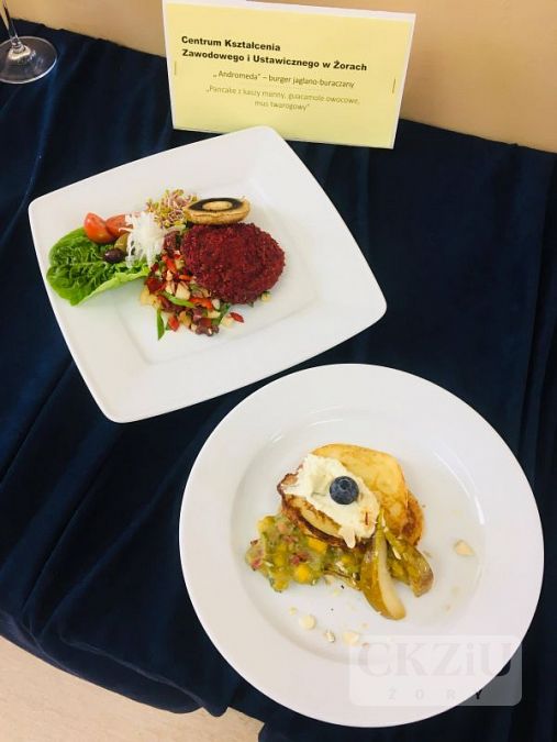 Naszą szkołę reprezentowali uczniowie klasy 3bZ: Marcin Zieleźny i Filip Pośpiech. Chłopcy przygotowali burgera jaglano-buraczanego oraz pancake'a z kaszy manny, guacamole owocowe i mus twarogowy. Jurorzy podkreślili potencjał chłopaków i pochwalili ich za wyśmienity smak przygotowanych dań. Dziękujemy naszym młodym kucharzom i życzymy im wytrwałości i powodzenia w następnych konkursach.