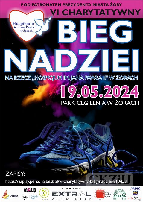 Stowarzyszenie Przyjaciół Chorych „Hospicjum im. Jana Pawła II" w Żorach informuje o zapisach na VI Charytatywny Bieg Nadziei, który odbędzie się 19 maja br. (niedziela) w żorskim Parku Cegielnia. Całkowity dochód uzyskany podczas Biegu przekazany zostanie na rzecz żorskiego Hospicjum. Dlatego zachęcamy gorąco do wspólnego budowania tego wielkiego dzieła oraz wsparcia szlachetnej misji niesienia pomocy chorym.