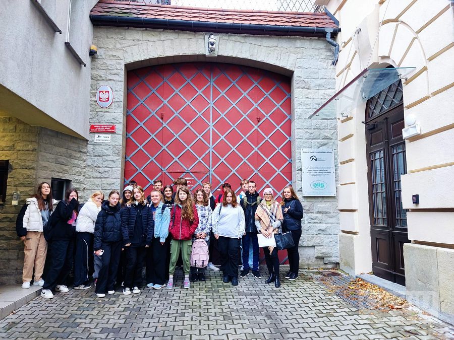 Dnia 25 października br. uczniowie klasy 1aT razem z opiekunami: panią Agnieszką Niedobecką, panią Anną Krosny-Dudkiewicz i panią Katarzyną Szestak, wzięli udział w wycieczce edukacyjnej do Zakładu Karnego w Bielsku-Białej w ramach Ogólnopolskiego Programu Edukacyjnego Służby Więziennej - „W służbie prawu” - który ma na celu prewencję przestępstw wśród młodzieży. Wyjazd stanowił okazję do zaznajomienia się z funkcjonowaniem Zakładu Karnego, codziennym życiem osadzonych oraz specyfiką pracy funkcjonariuszy Służby Więziennej. Zajęcia przeprowadzone na terenie placówki obejmowały prezentację uprawnień funkcjonariuszy służby więziennej w zakresie użycia środków przymusu bezpośredniego i broni palnej, spacer po jednostce w towarzystwie funkcjonariuszy, szkolenie mające na celu podniesienie świadomości prawnej młodzieży oraz spotkanie z osadzonym. Wycieczka uświadomiła uczniom konsekwencje naruszania porządku prawnego oraz rzeczywisty charakter izolacji więziennej.