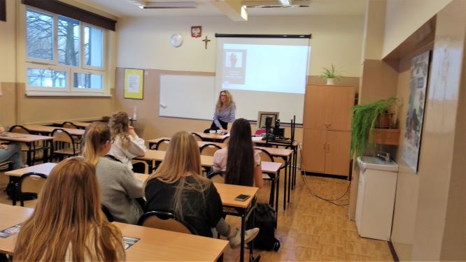 W dniu 15 stycznia 2019 r. gościliśmy w Centrum przedstawicielkę Wyższej Szkoły Bezpieczeństwa z siedzibą w Jastrzębiu Zdroju. Pani Ewa Mirecka poprowadziła warsztaty dla uczniów klasy 3aT i 4T. Tematyka obejmowała „Skuteczne metody poszukiwania pracy” oraz „Mediację rówieśniczą”. Warsztaty zorganizowała pani wicedyrektor Agnieszka Niedobecka.